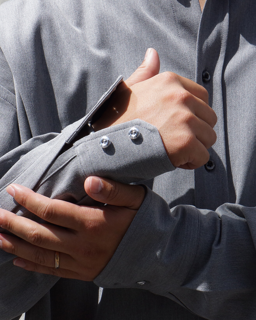 袖口にジュラルミンボタンを2つずつ取り付け、