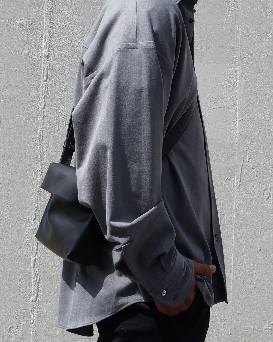 ポケットのないシャツに、ポケット代わりのミニショルダー。