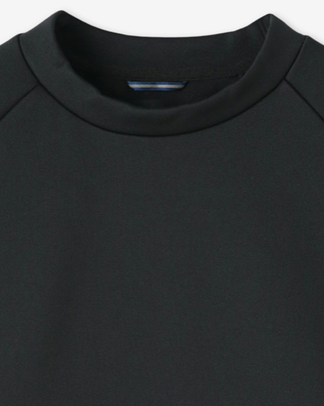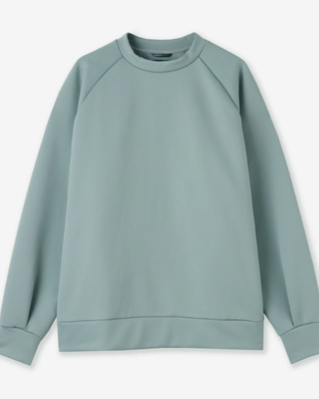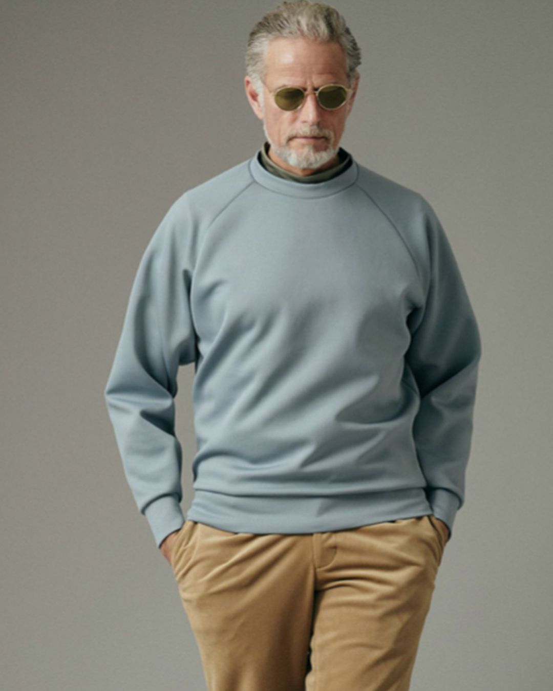 デザインも、流行に捉われないクルーネック仕様で、肩周りの身体の動きを快適にサポートするラグランスリーブを採用、着心地もしっかりと考慮されて襟、袖先、裾に安定したフィット感があります。