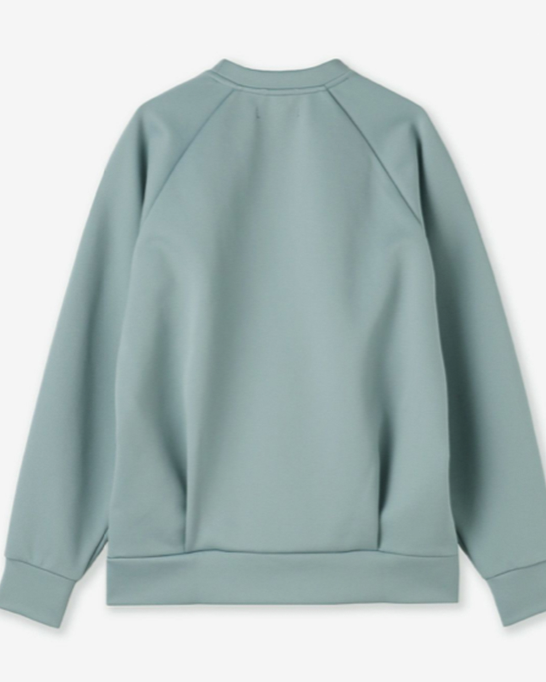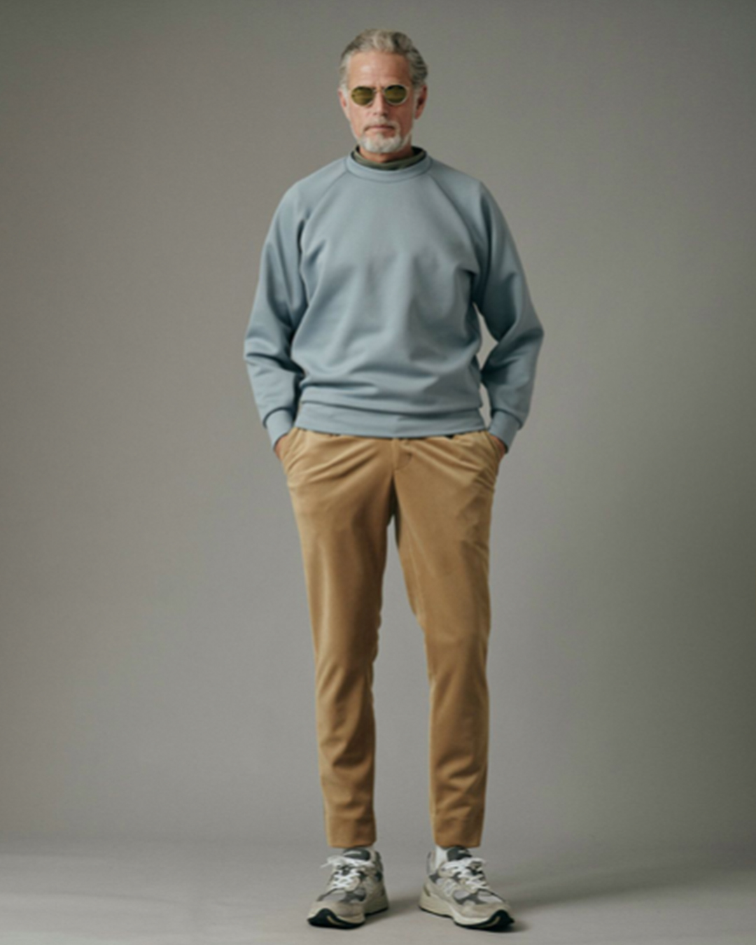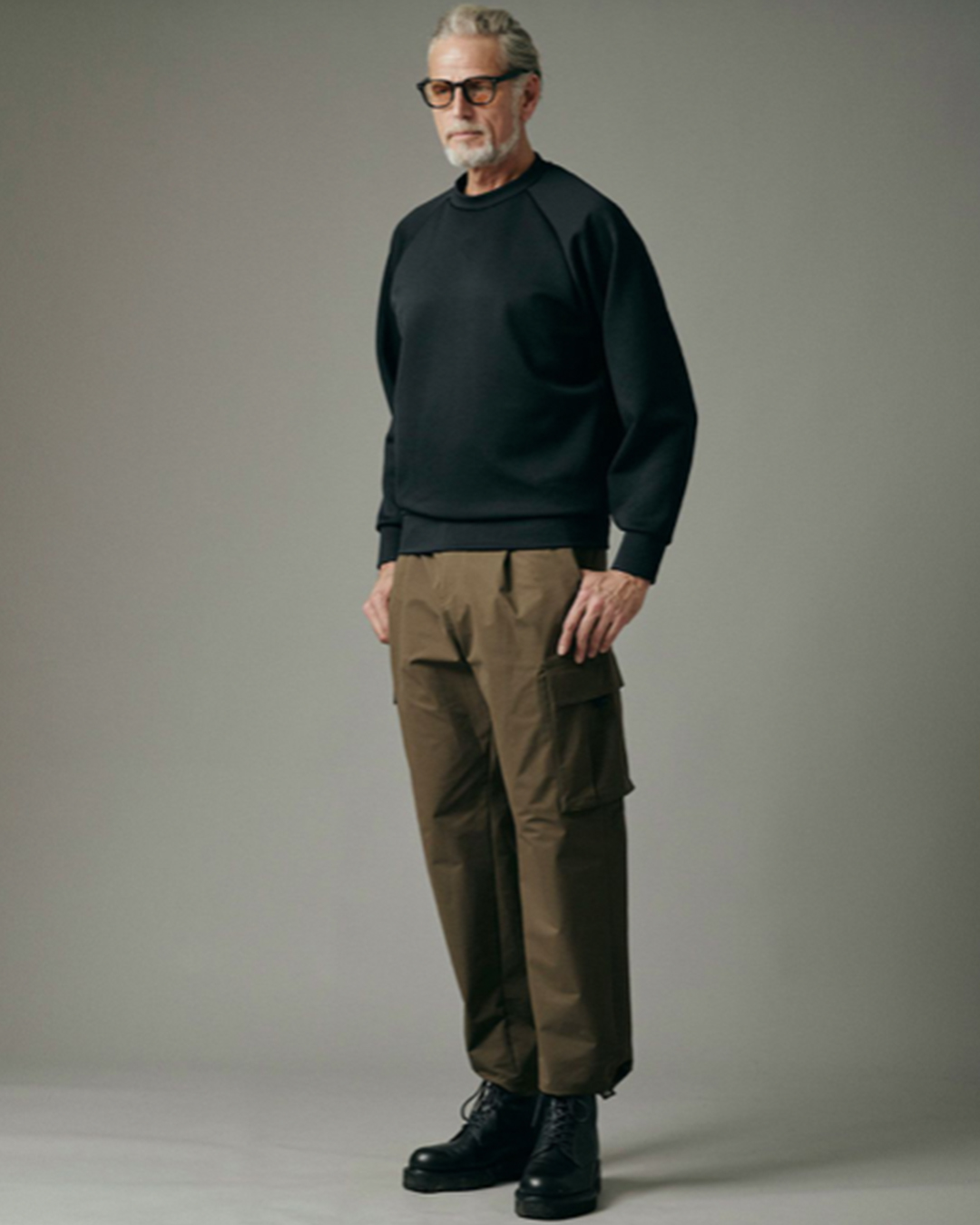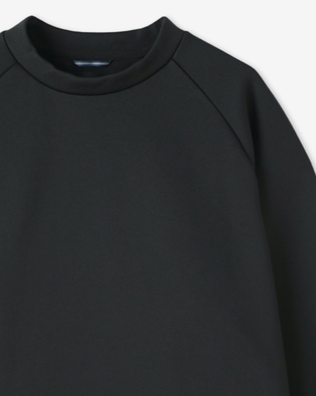 デザインも、流行に捉われないクルーネック仕様で、肩周りの身体の動きを快適にサポートするラグランスリーブを採用、着心地もしっかりと考慮されて襟、袖先、裾に安定したフィット感があります。