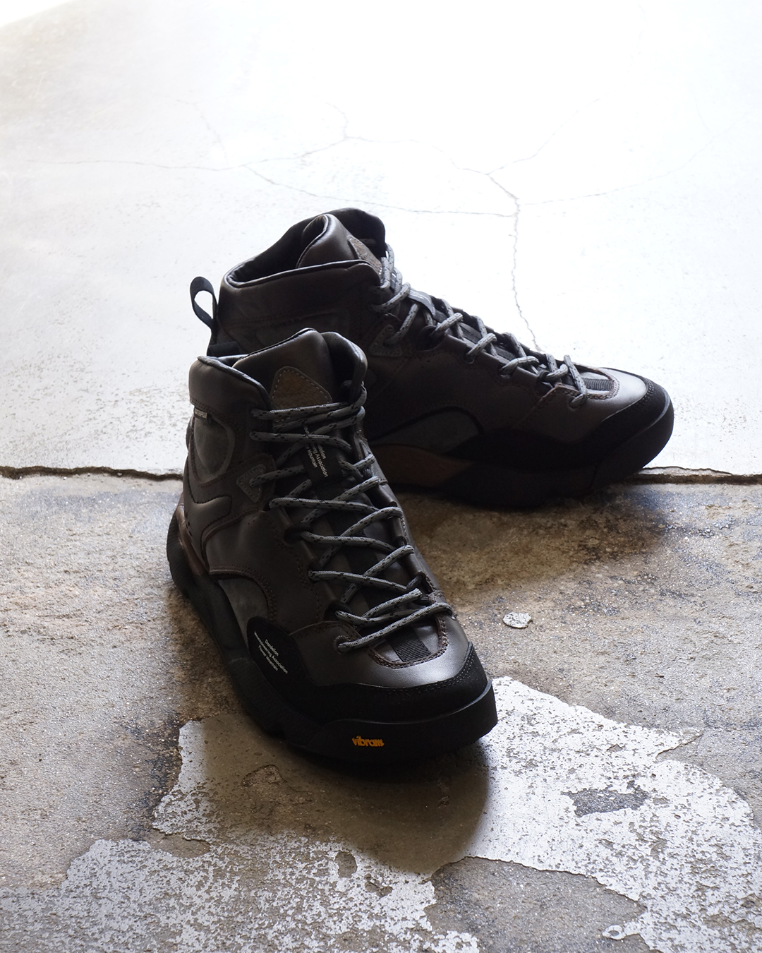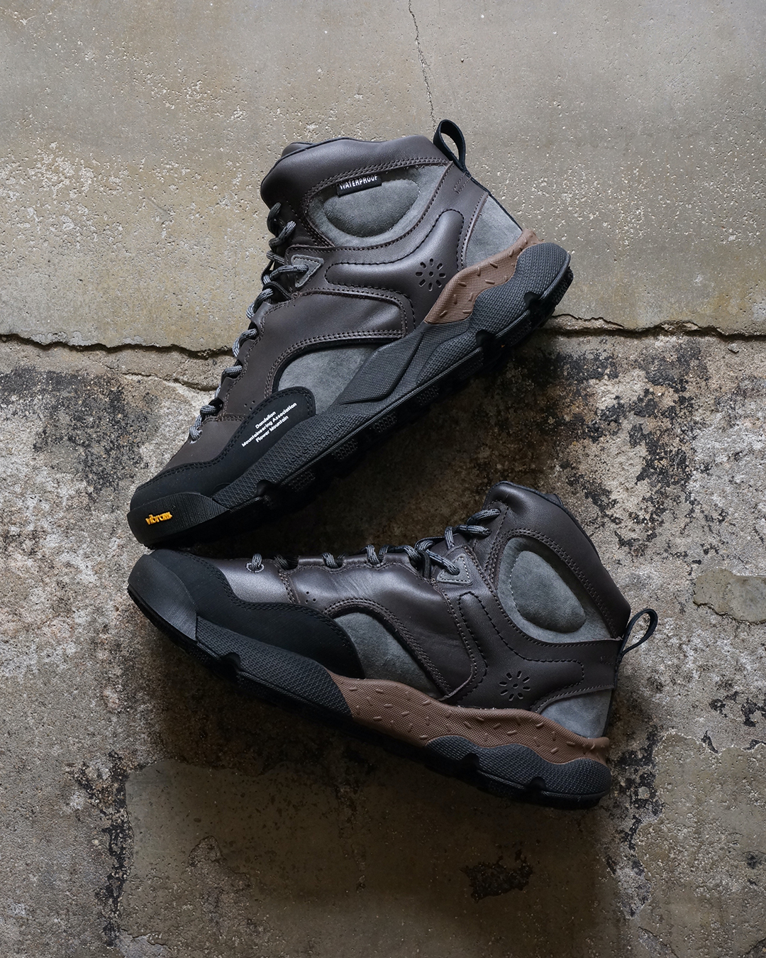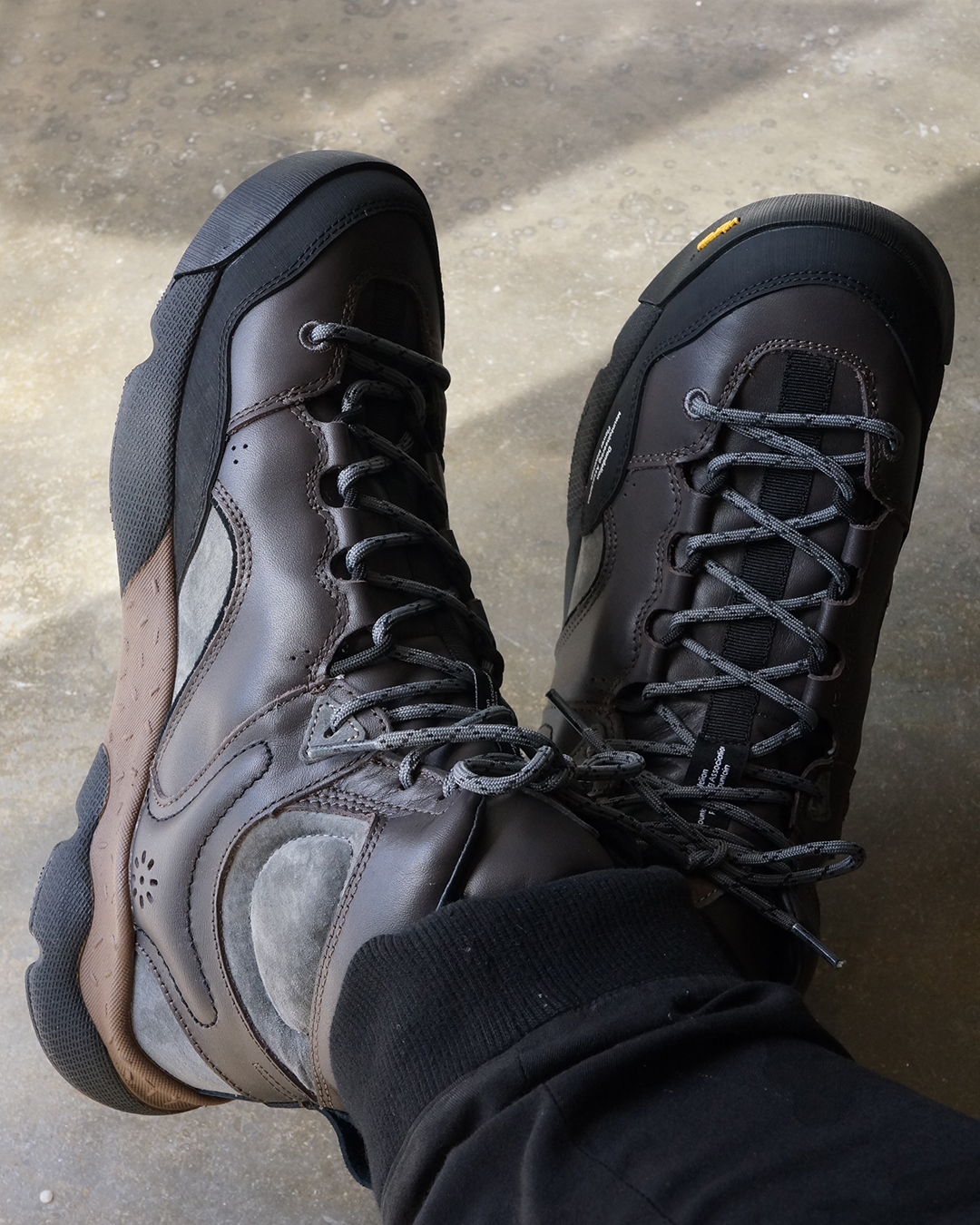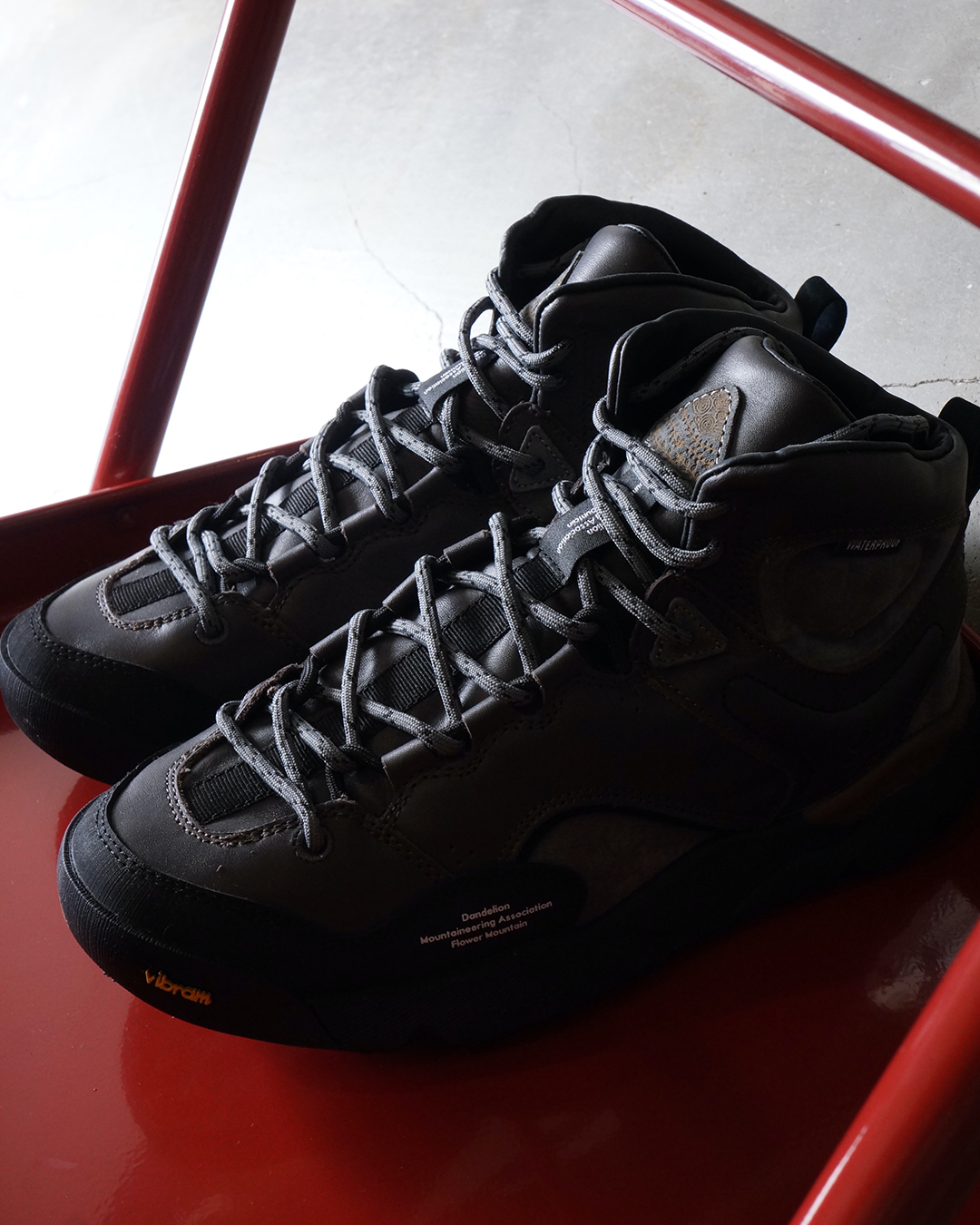 アウトドアシーン対応する機能性にこだわったトレッキングモデル “BACK COUNTRY”のハイカット。「DMA」のプロデーュスにより足首周りを保護するアンクル丈に改修。機能性はローカットモデルをそのまま継承。完全防水・パラコードシューレースを採用。ツーリングには悪路でも確実に路面をグリップするビブラム社の『 MEGA GRIP 』を使用したFlower MOUNTAINオリジナルソールを搭載。