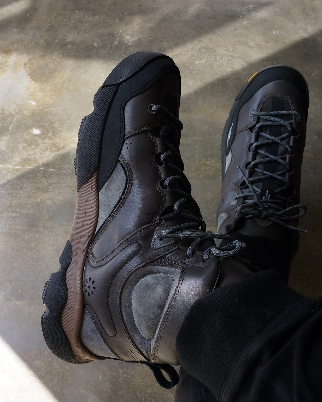 2025AWコレクションは雪原を思わせるピュアホワイトと上品なブラウンのコンビネーションが高級感と清潔感の漂わせる” WHITE/BROWN “とブラウンとチャコールをMIXさせたような深い味わいが特徴の” IRON BROWN “の2カラー。両カラー共にAWシーズンだけでなく履きたい1足に仕上がっている。