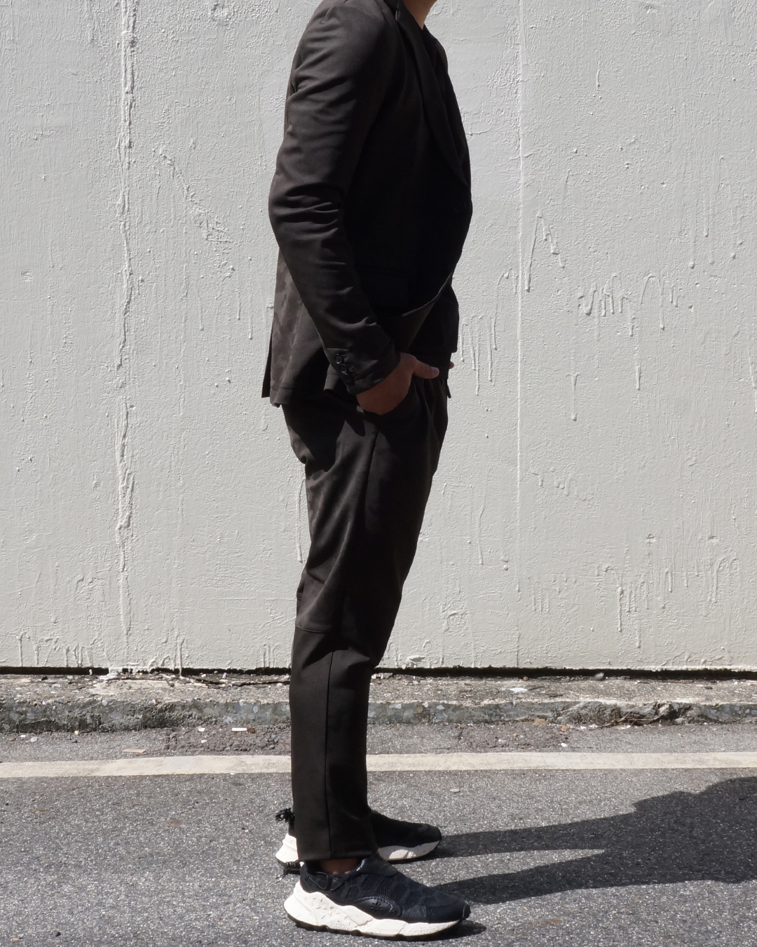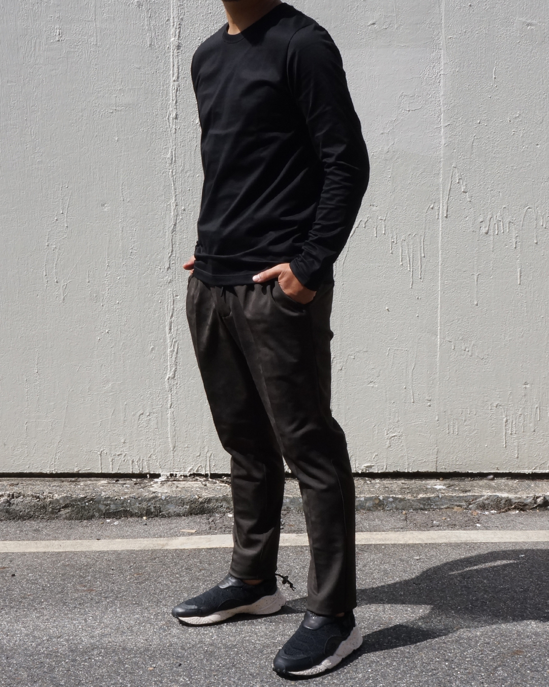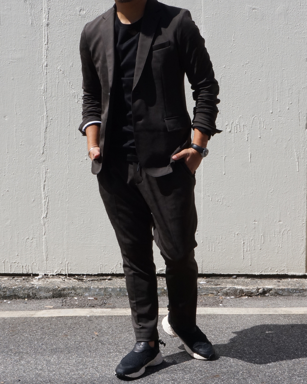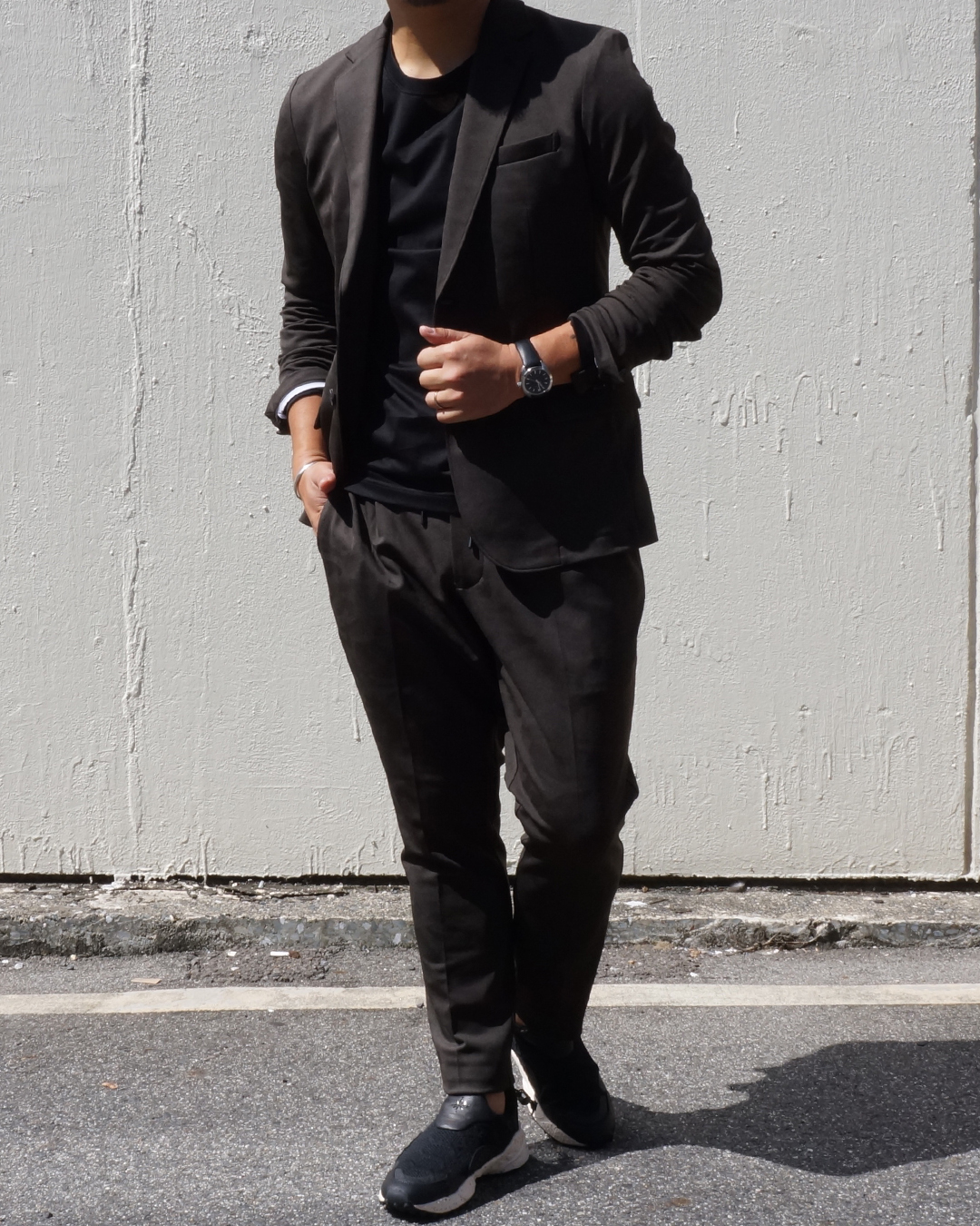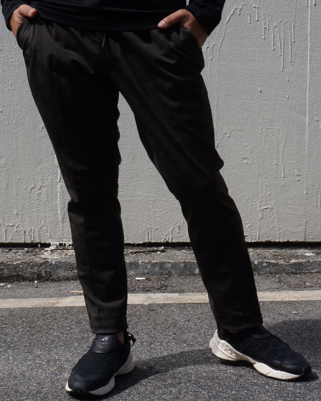 素材はリラックスウェア、シルエットは程良くシャープに。