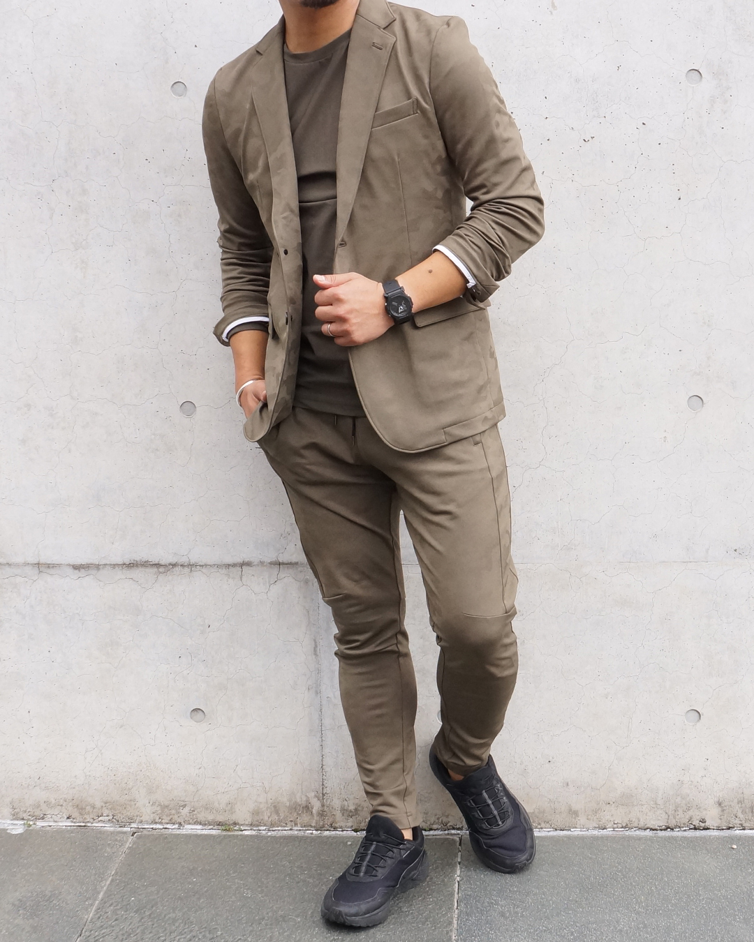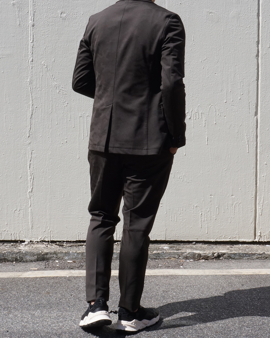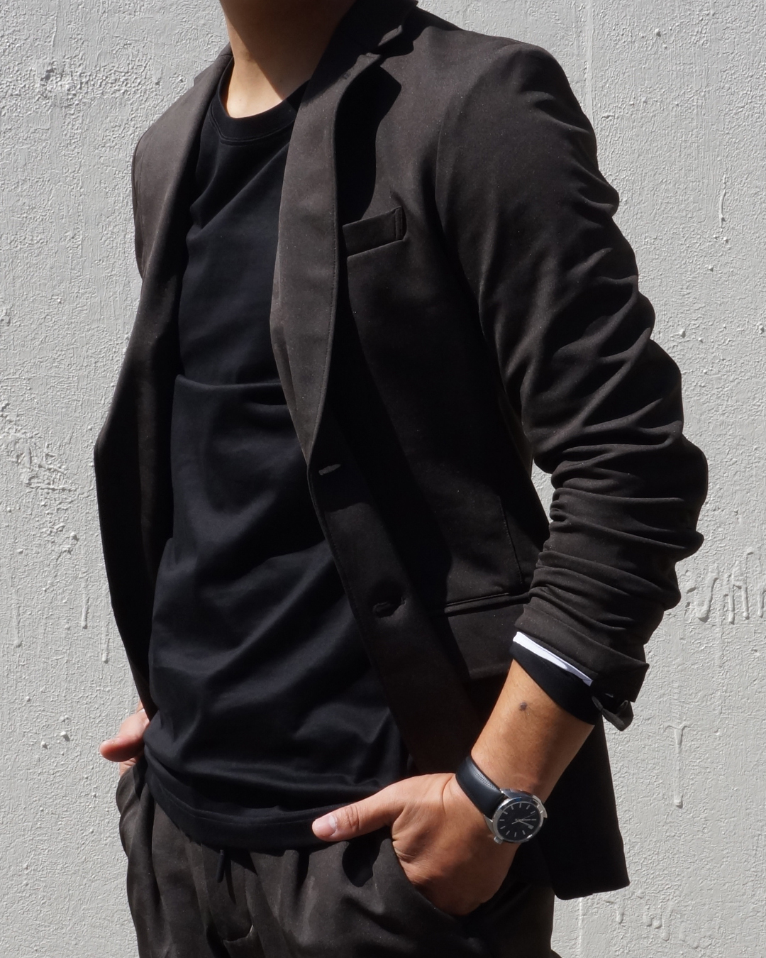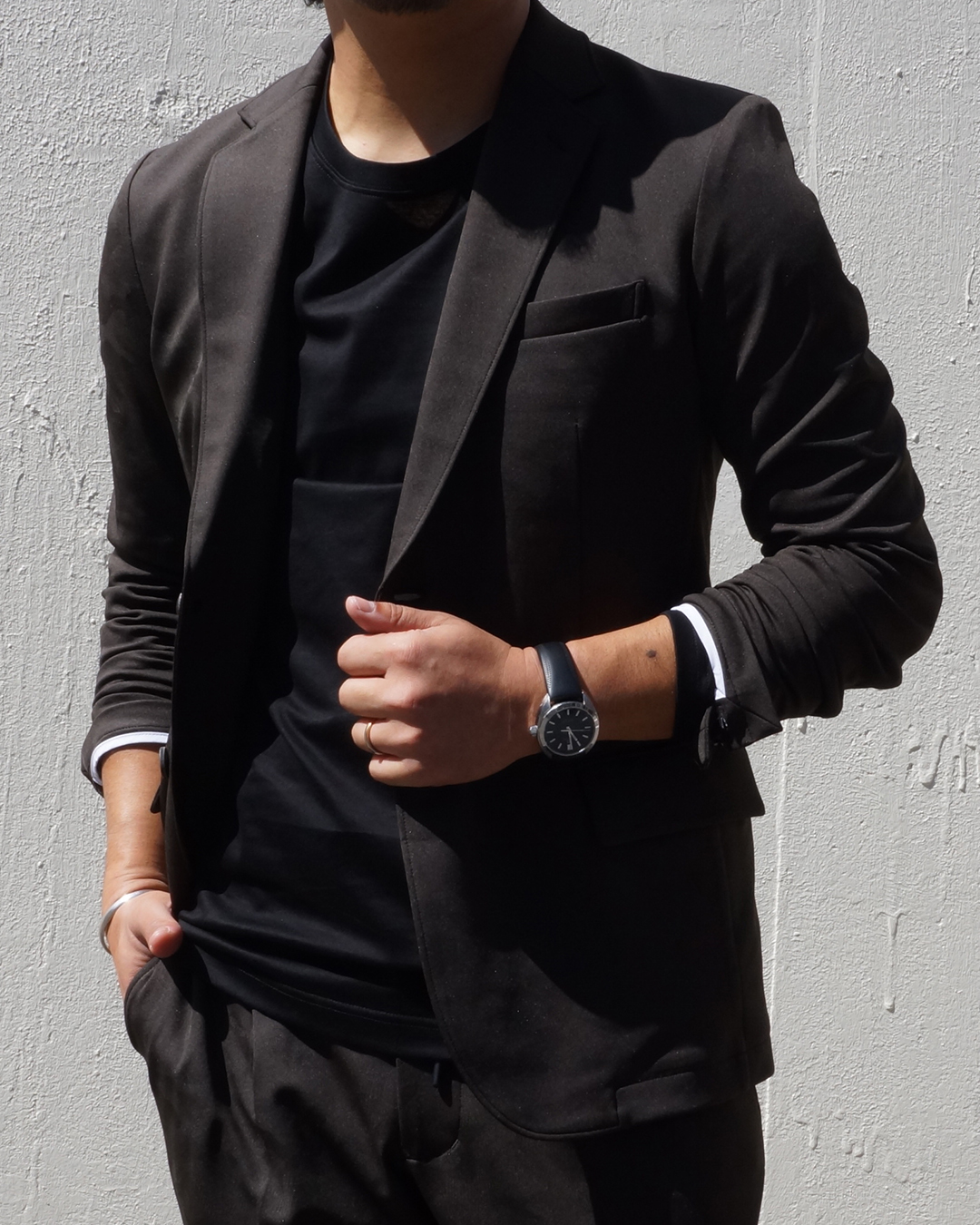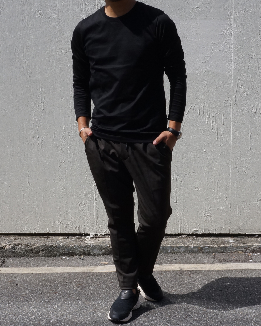 素材はリラックスウェア、シルエットは程良くシャープに。