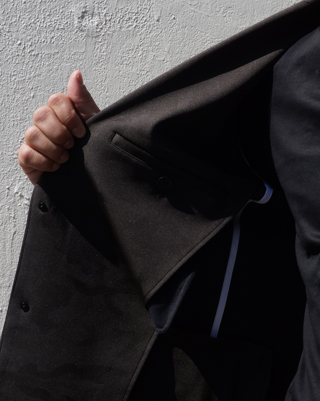 光の陰影で表現されるようなCAMO柄のエンボス加工により、いわゆる「シャドーカモ」の見え方に。