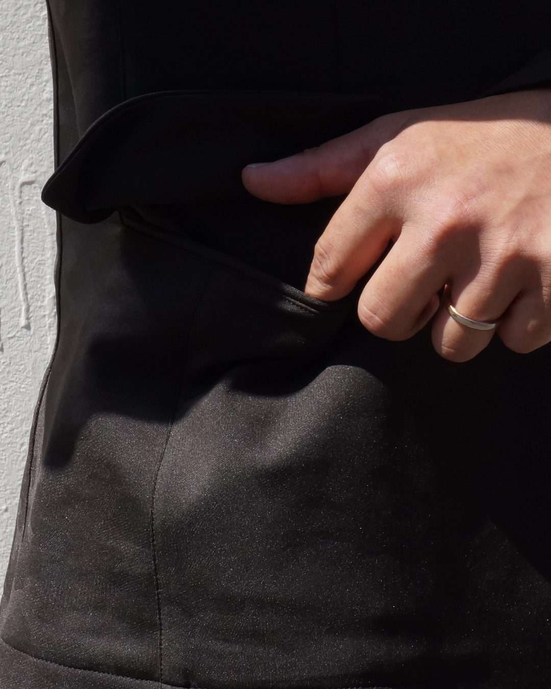 フロントのボタンを開けて着用した時のシルエットも綺麗で