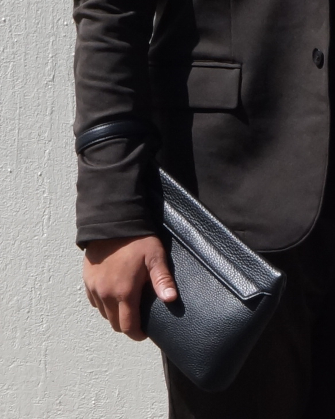 ▶︎ ハンドルに手首を通し、スッと持ち運べるクラッチバッグ。