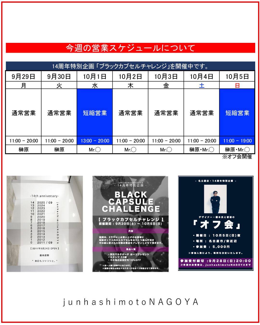 ☑︎10月5日(日)は11:00 – 19:00の短縮営業となります。※オフ会開催の為。