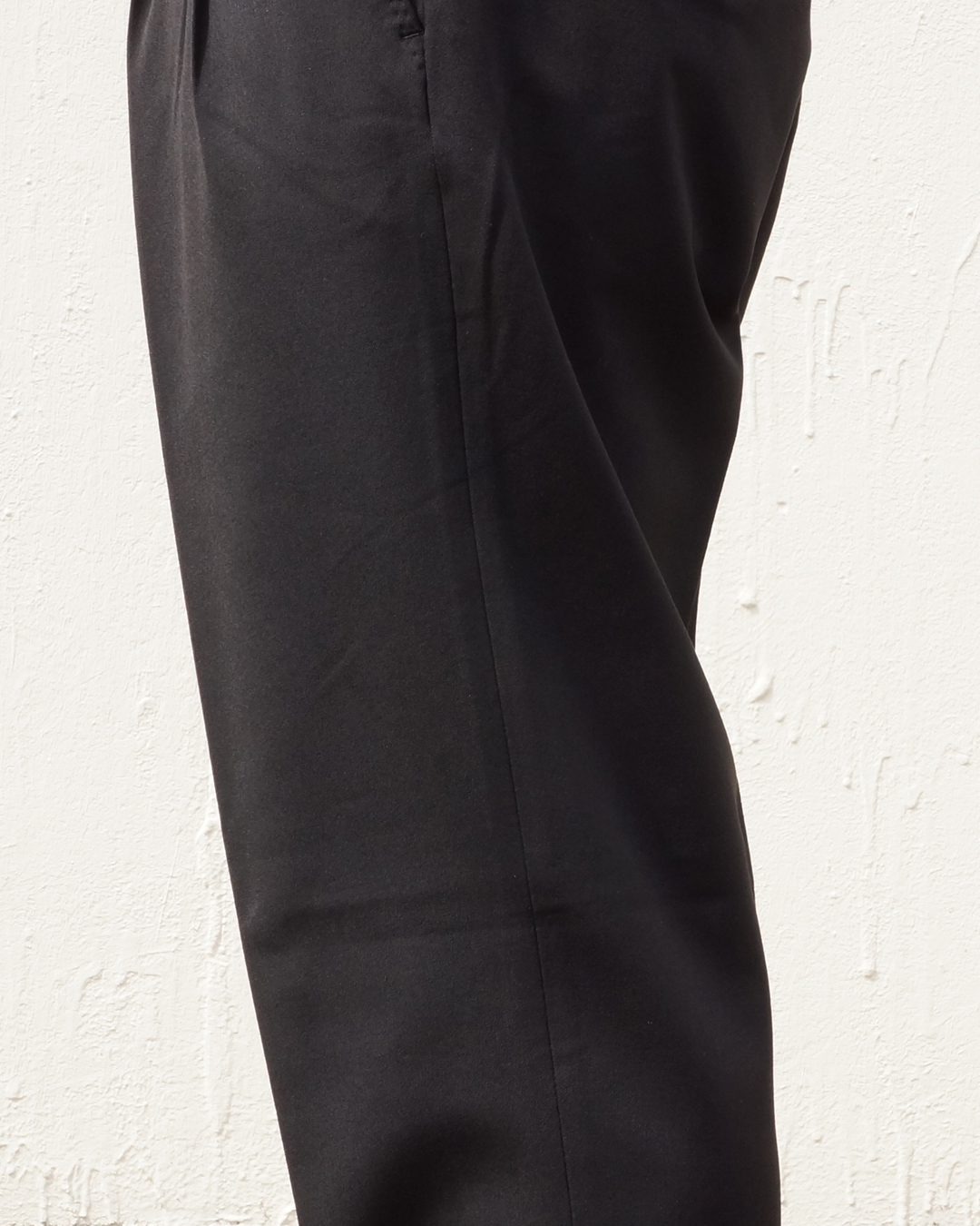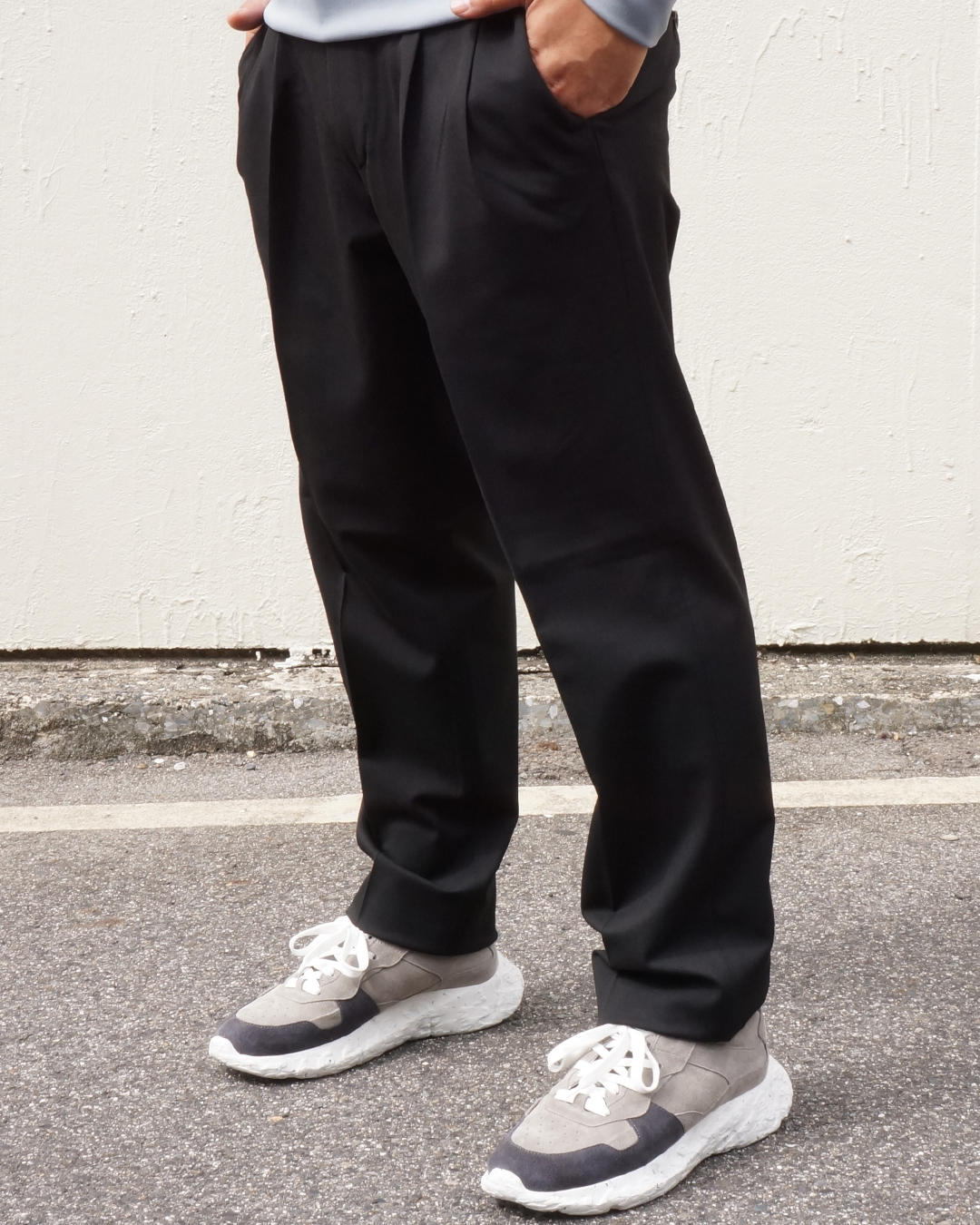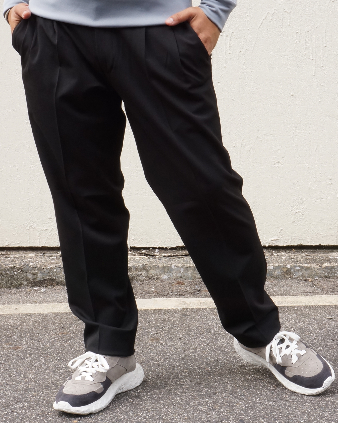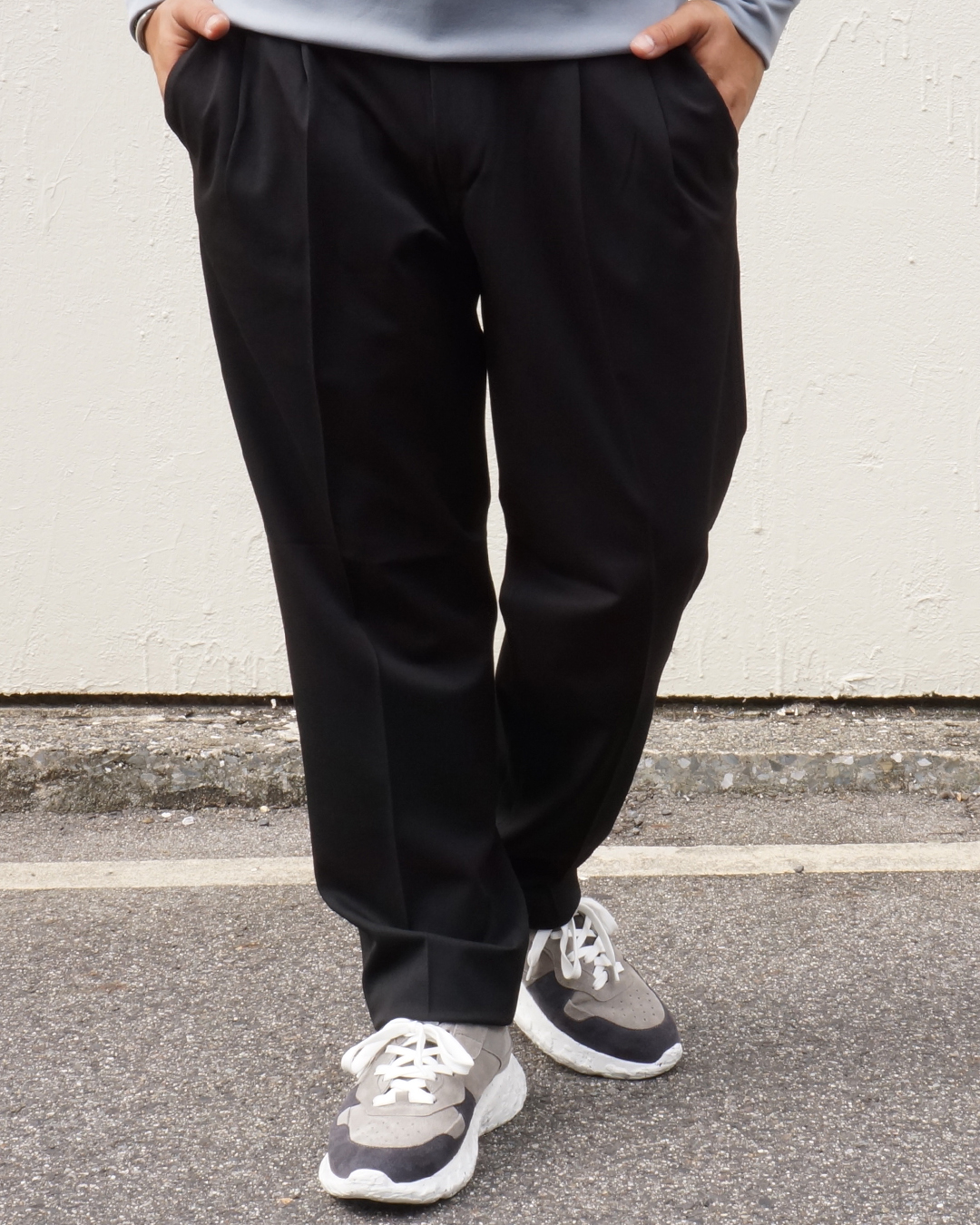 パンツは、リラックスシルエットの2タックパンツのブラック、