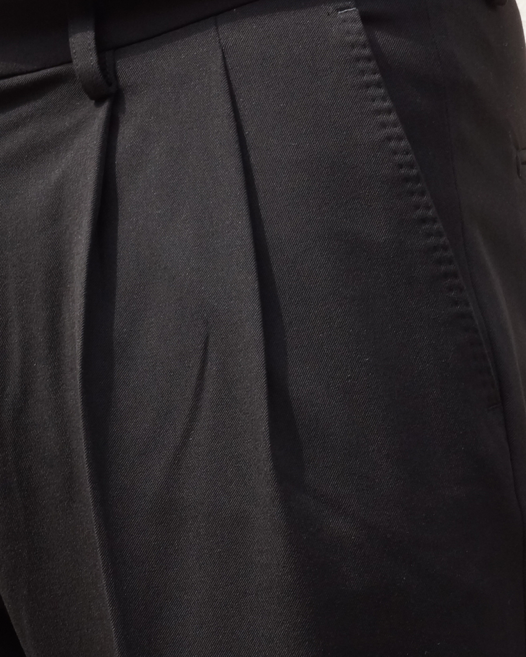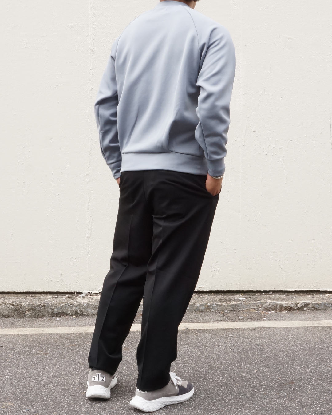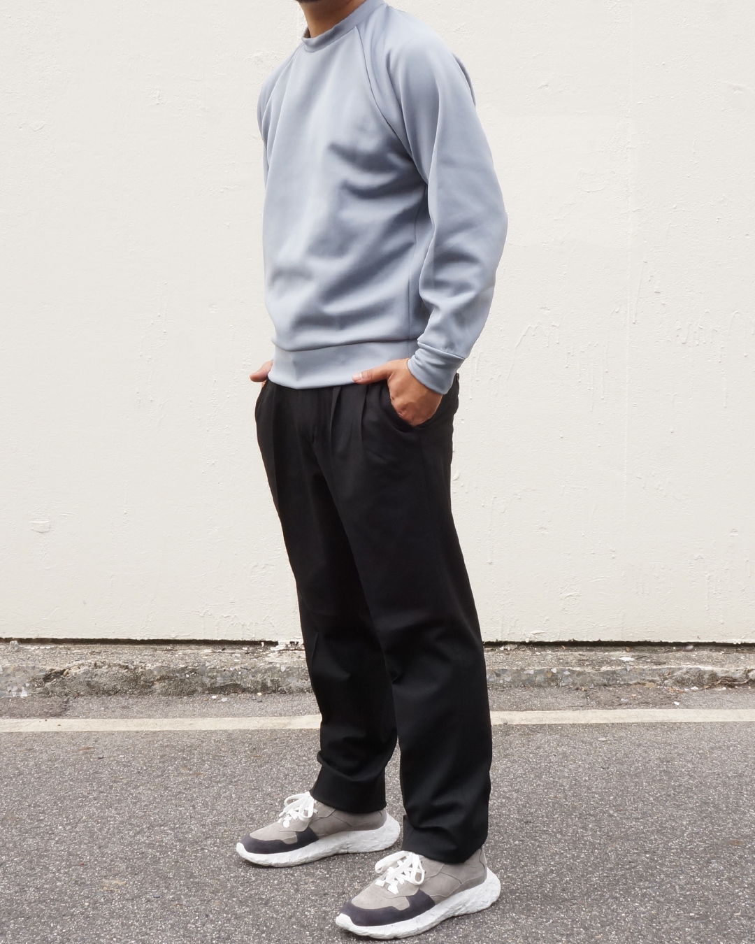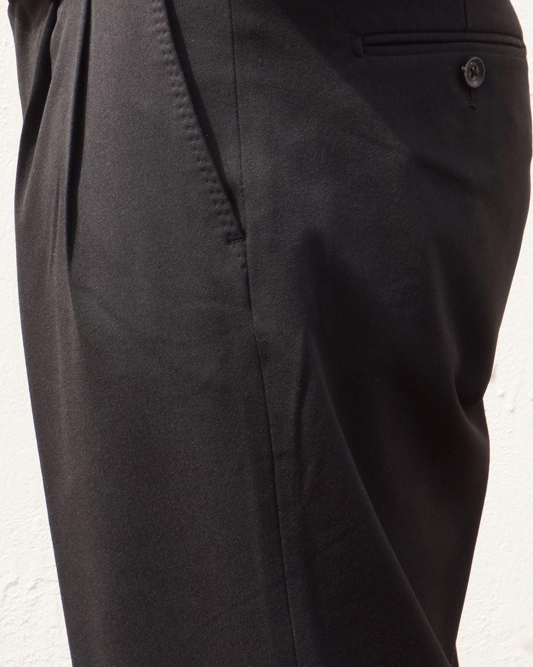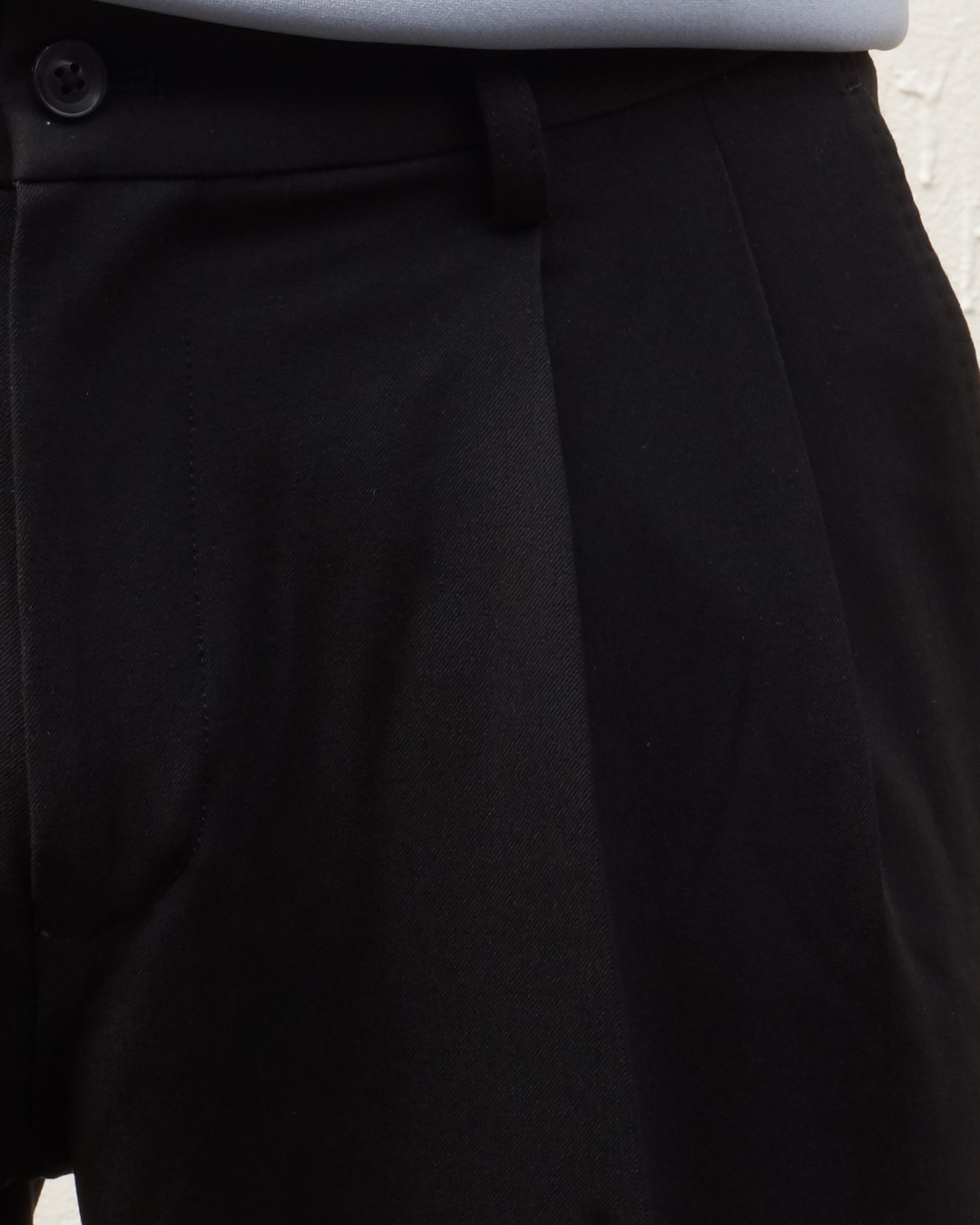 パンツは、リラックスシルエットの2タックパンツのブラック、