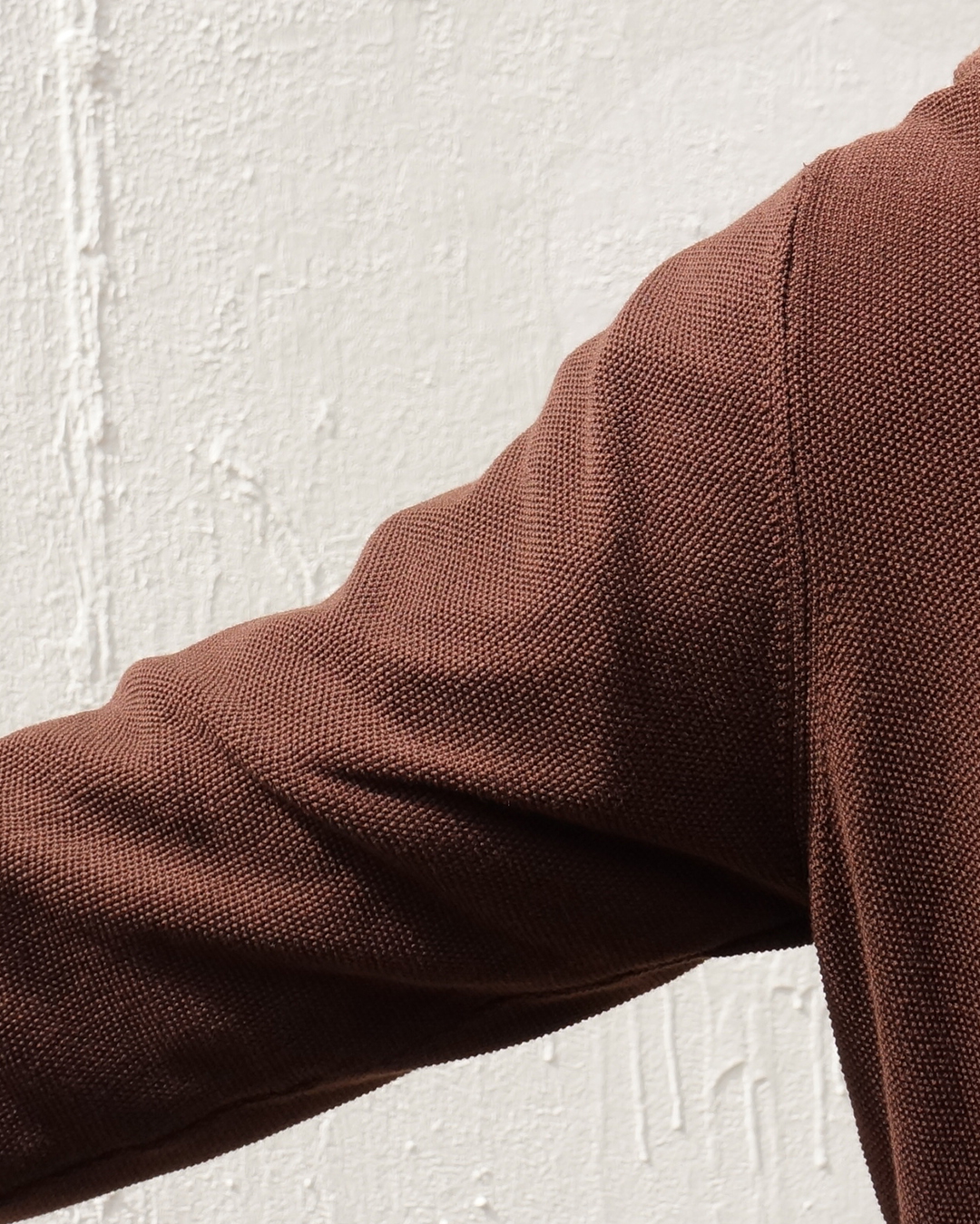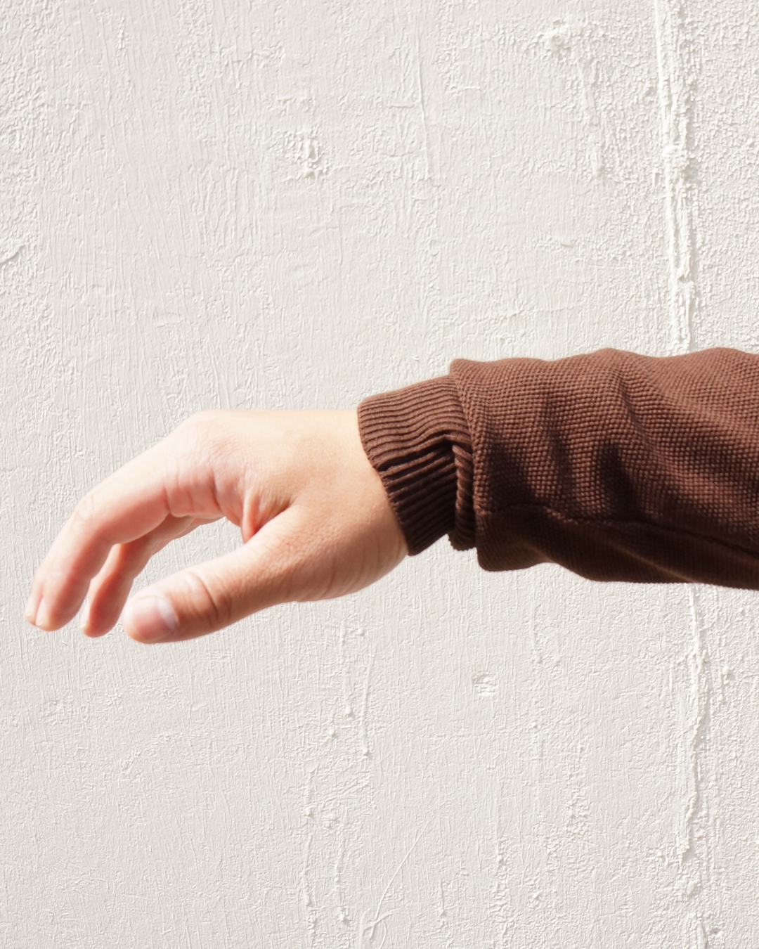 極細で上質なコットン素材を、凹凸のある鹿の子編みで度詰めで仕立てた
