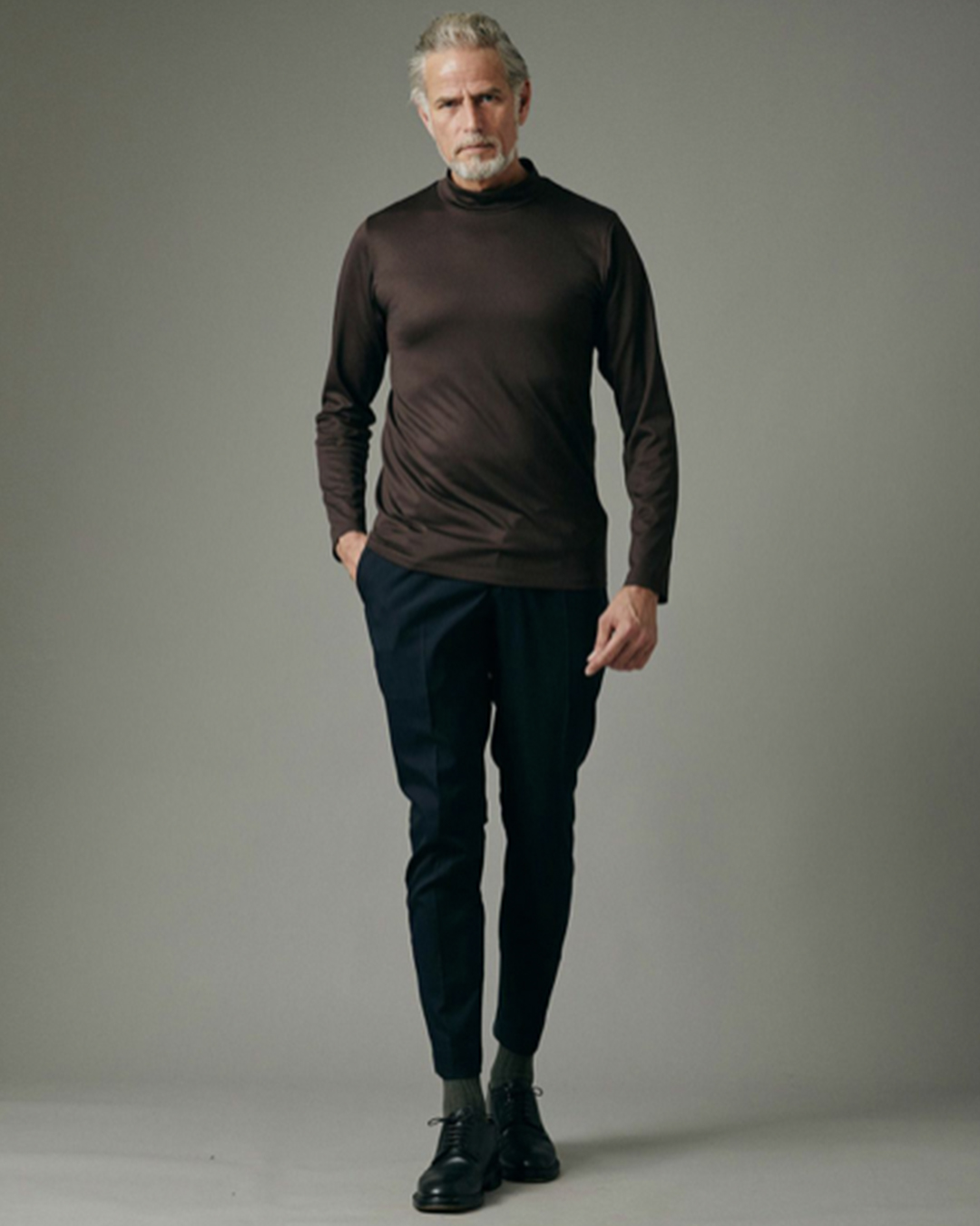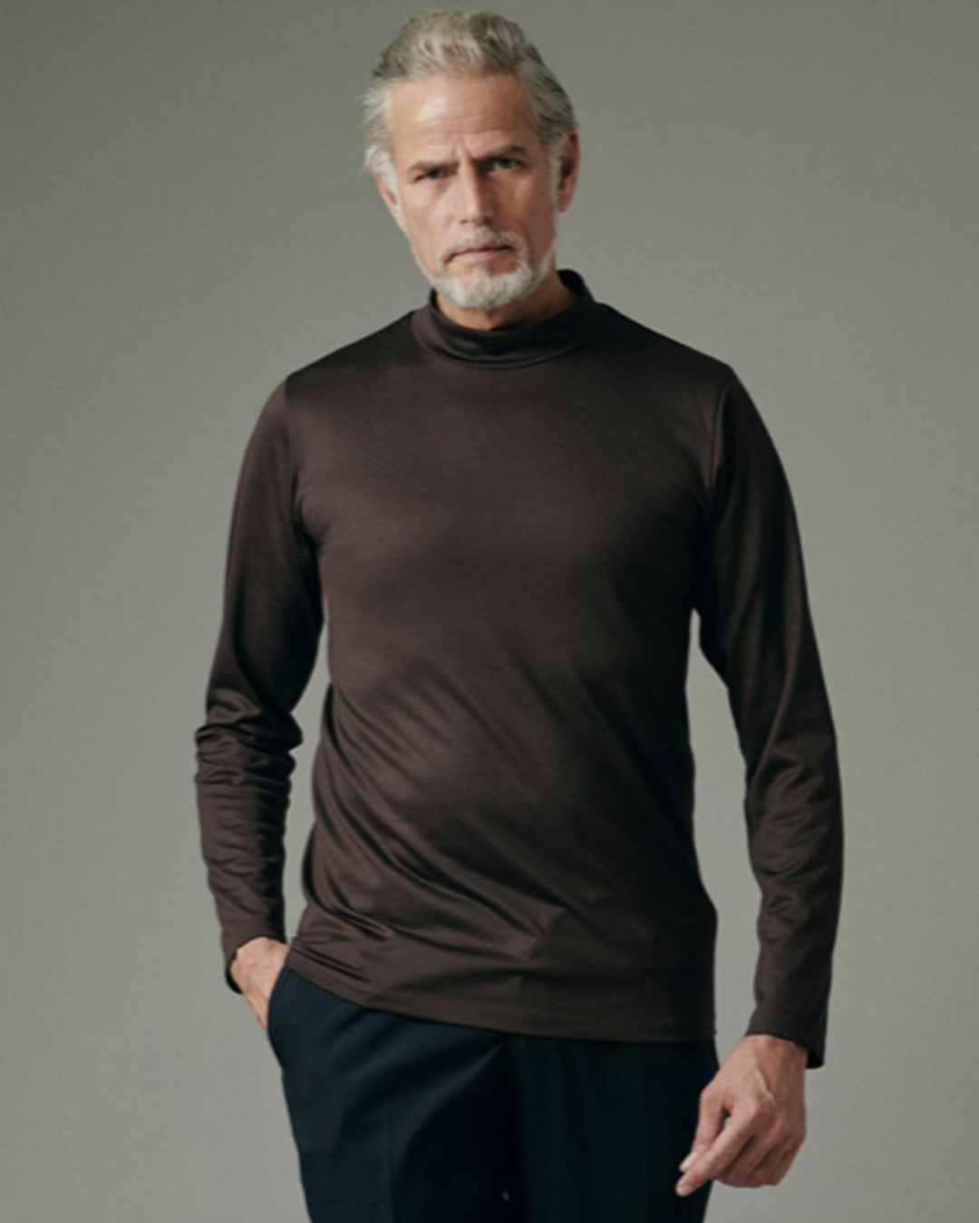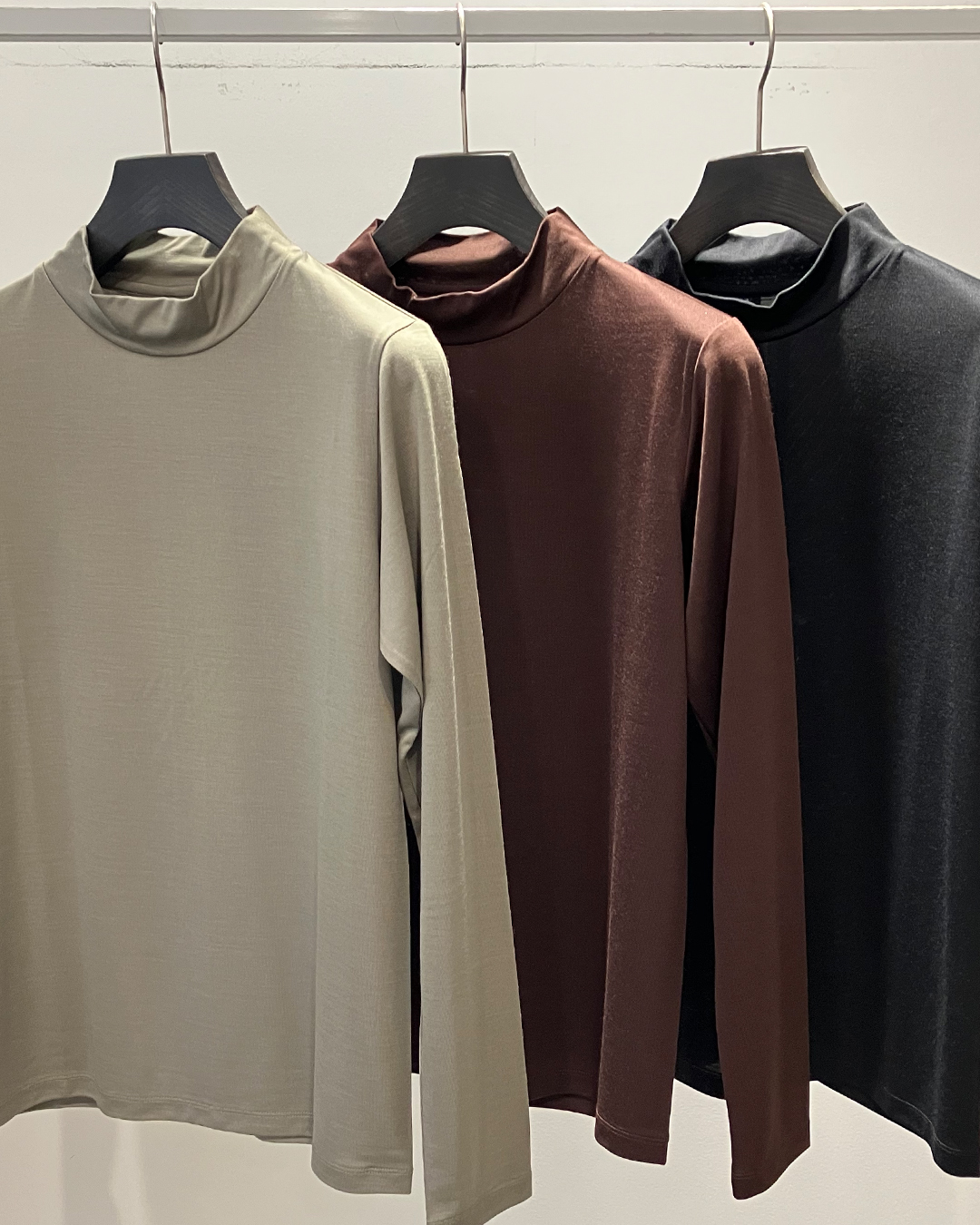 こちらは、1年間の中で、着用できる期間が長いMOCK NECK Tシャツです。
