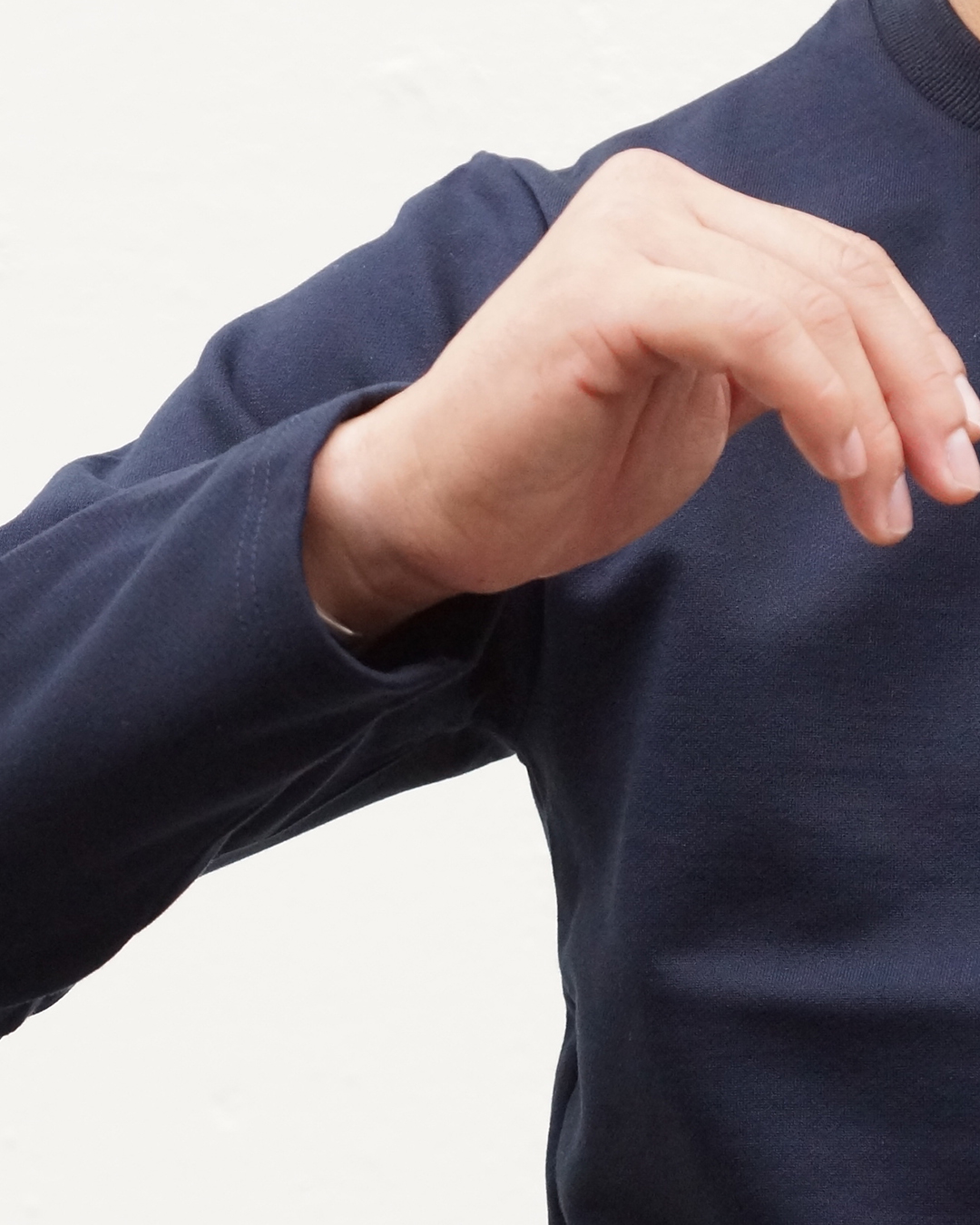 > 170cm , 72kg / NAVY・size 4 (気持ち緩め)