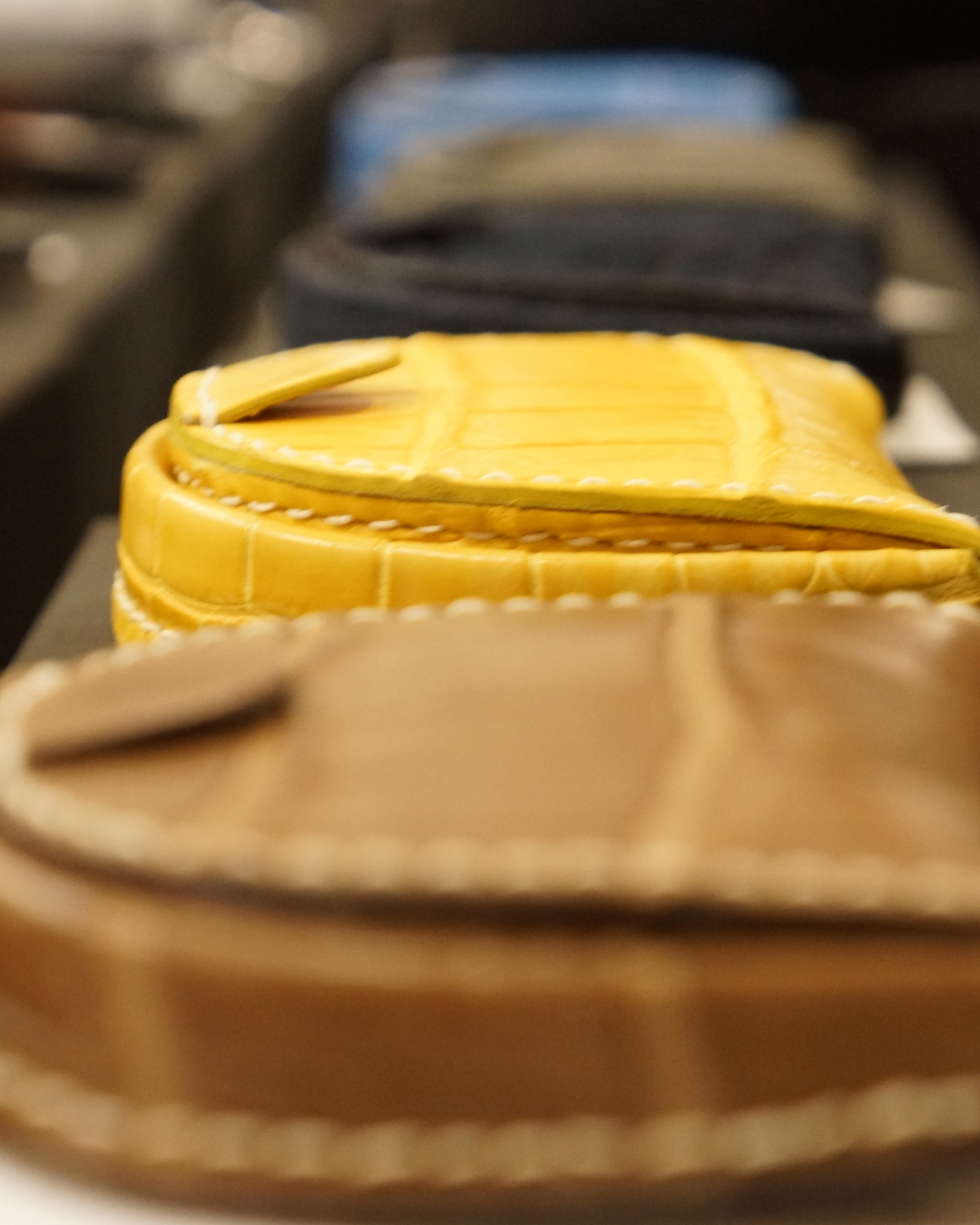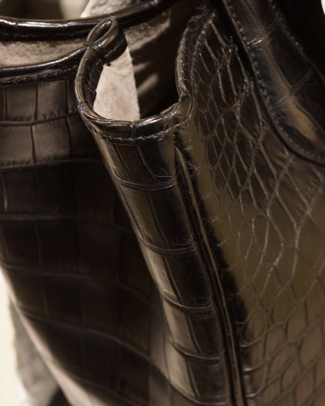 型押しクロコを一切使わず、「 本物しか使いません。」と言い切るスタンスも含めて