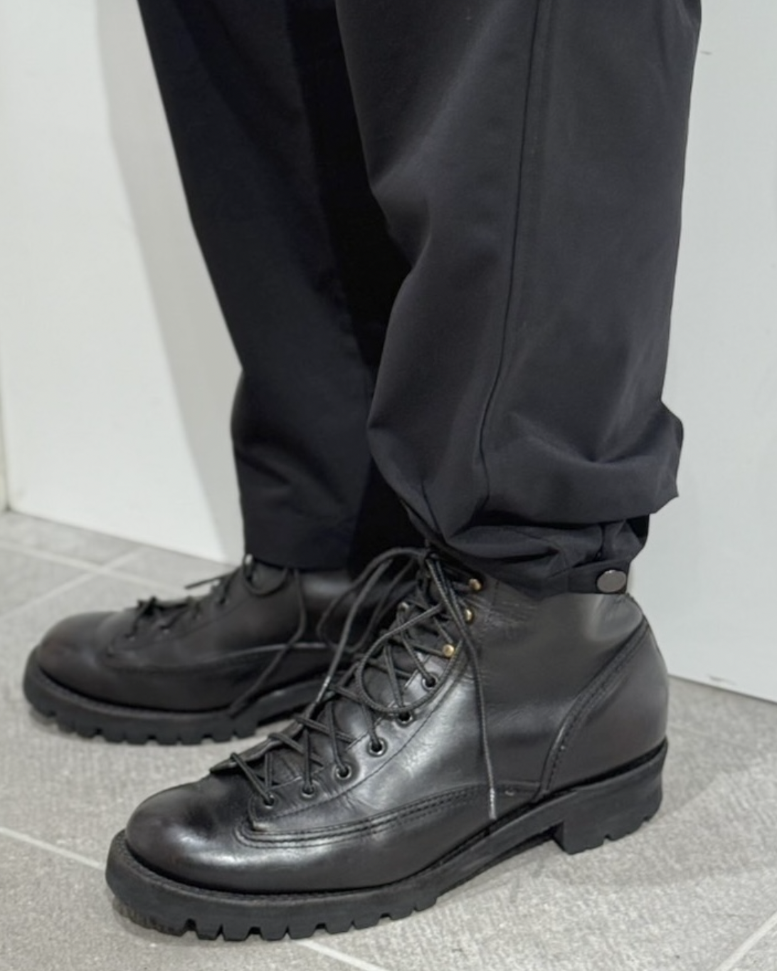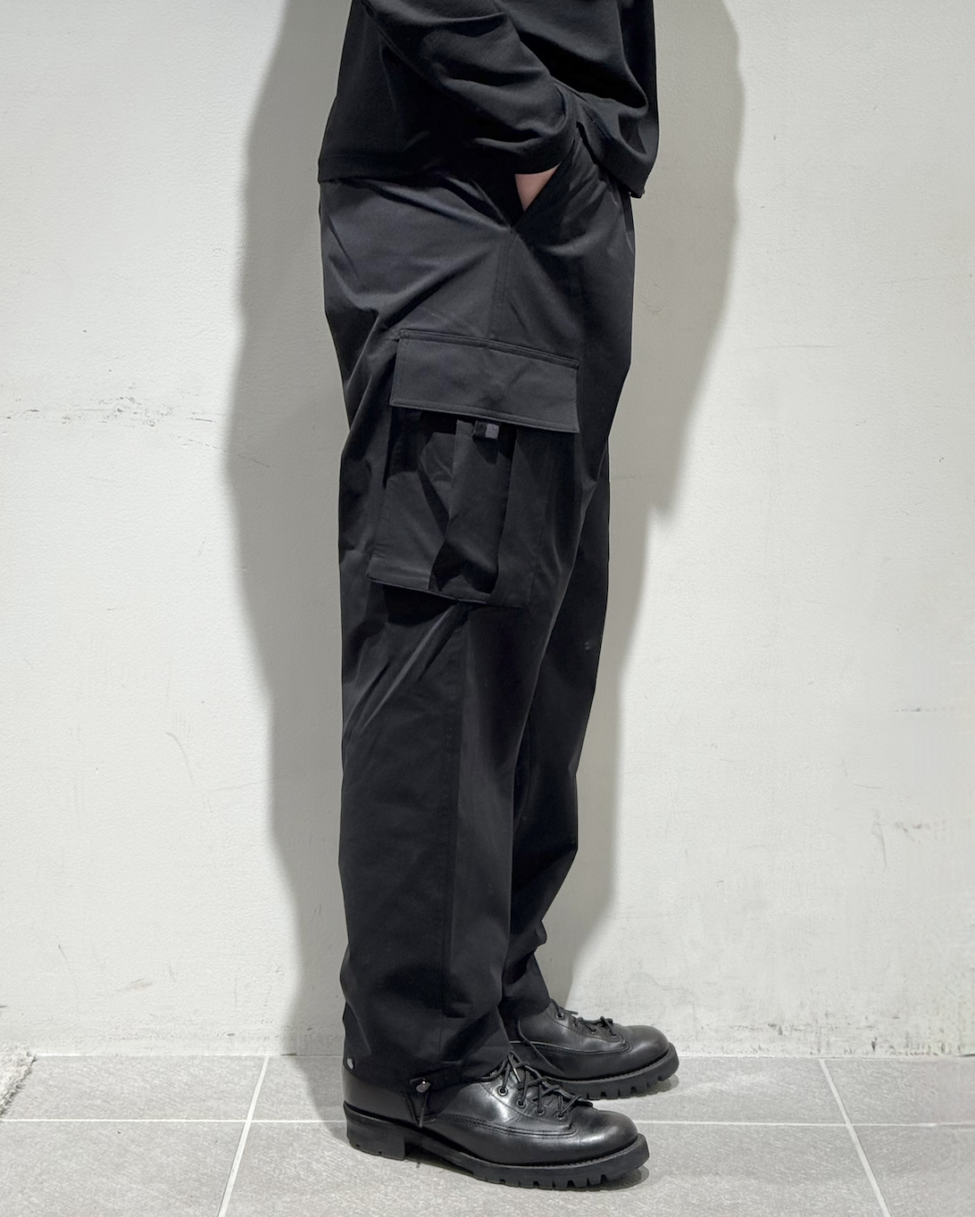 やはりこういったパンツはブーツと合わせるのがおすすめです。