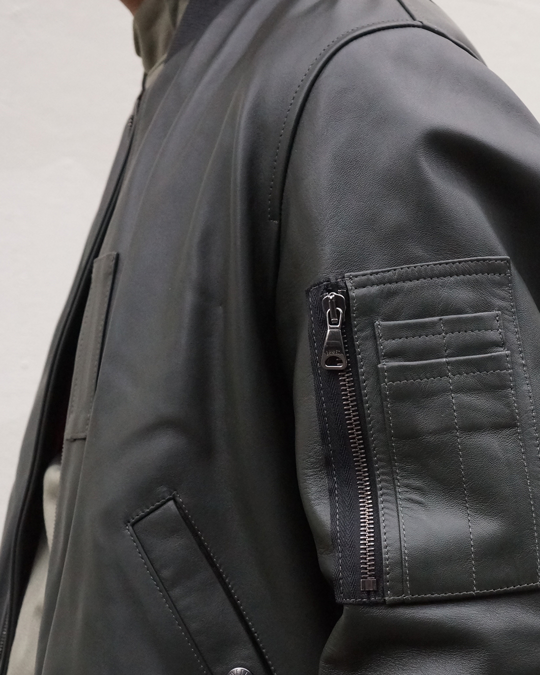 MA-1の基本ディテールを抑えながら、上品なレザーで仕上げた特別なアイテムです。