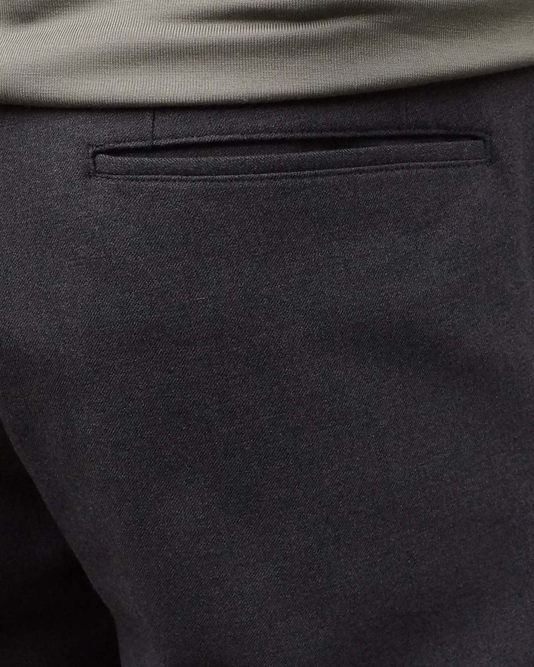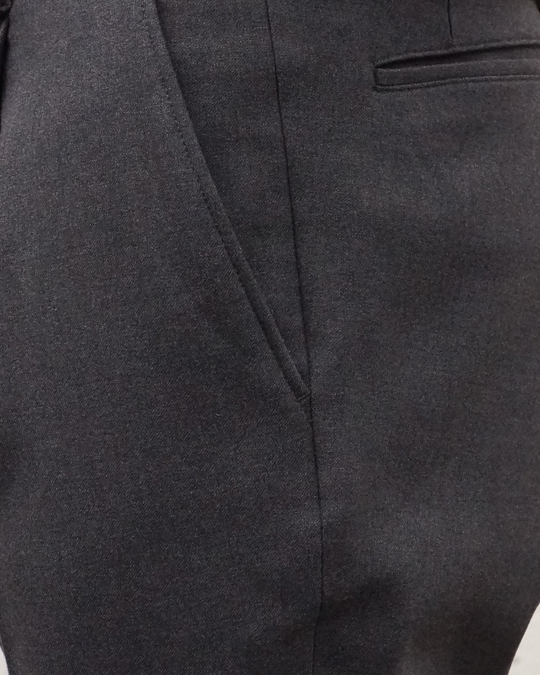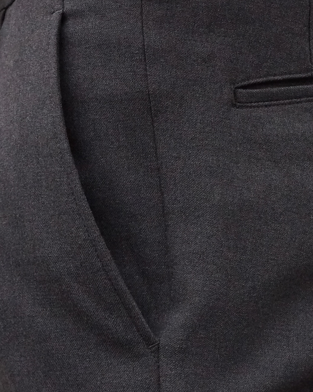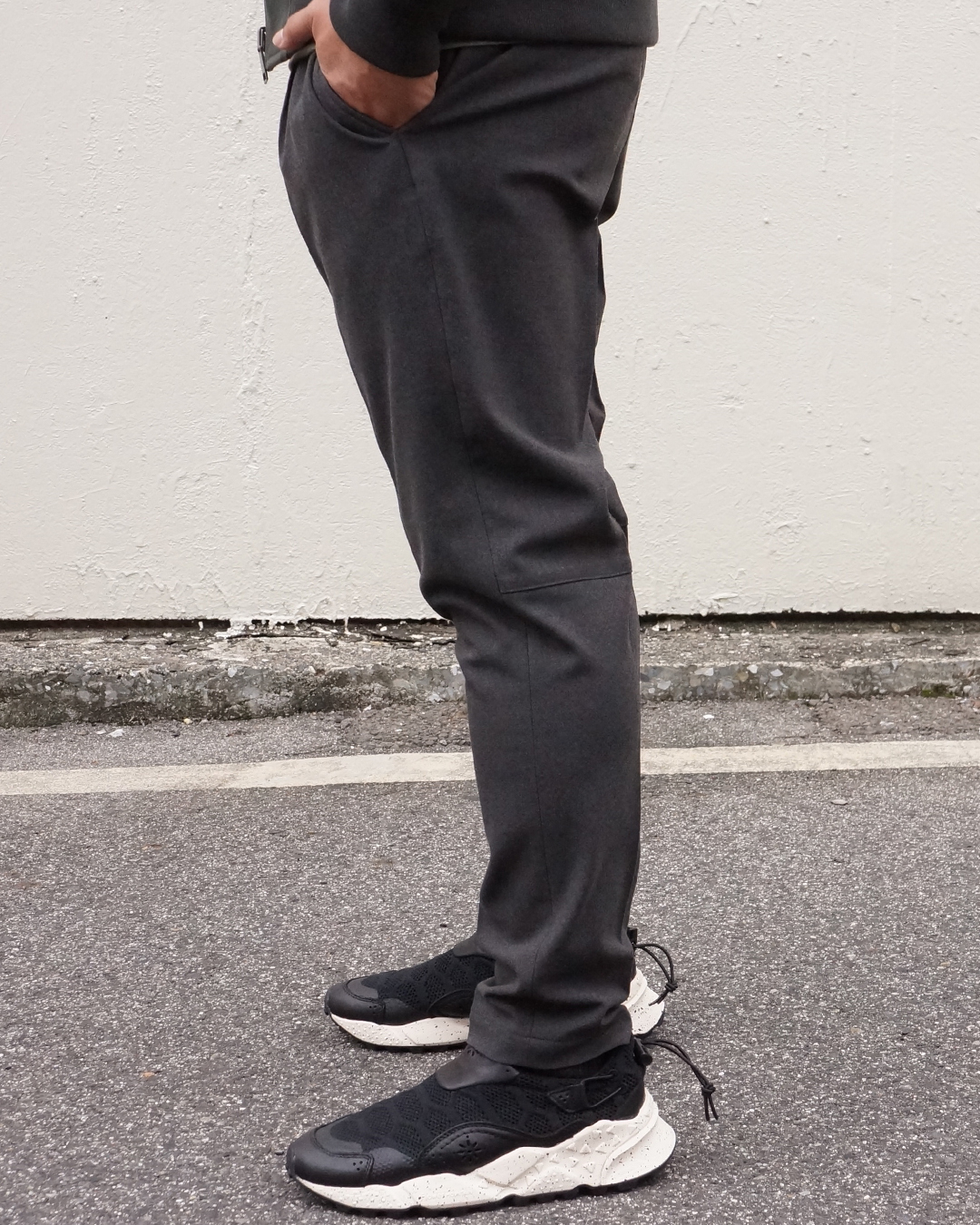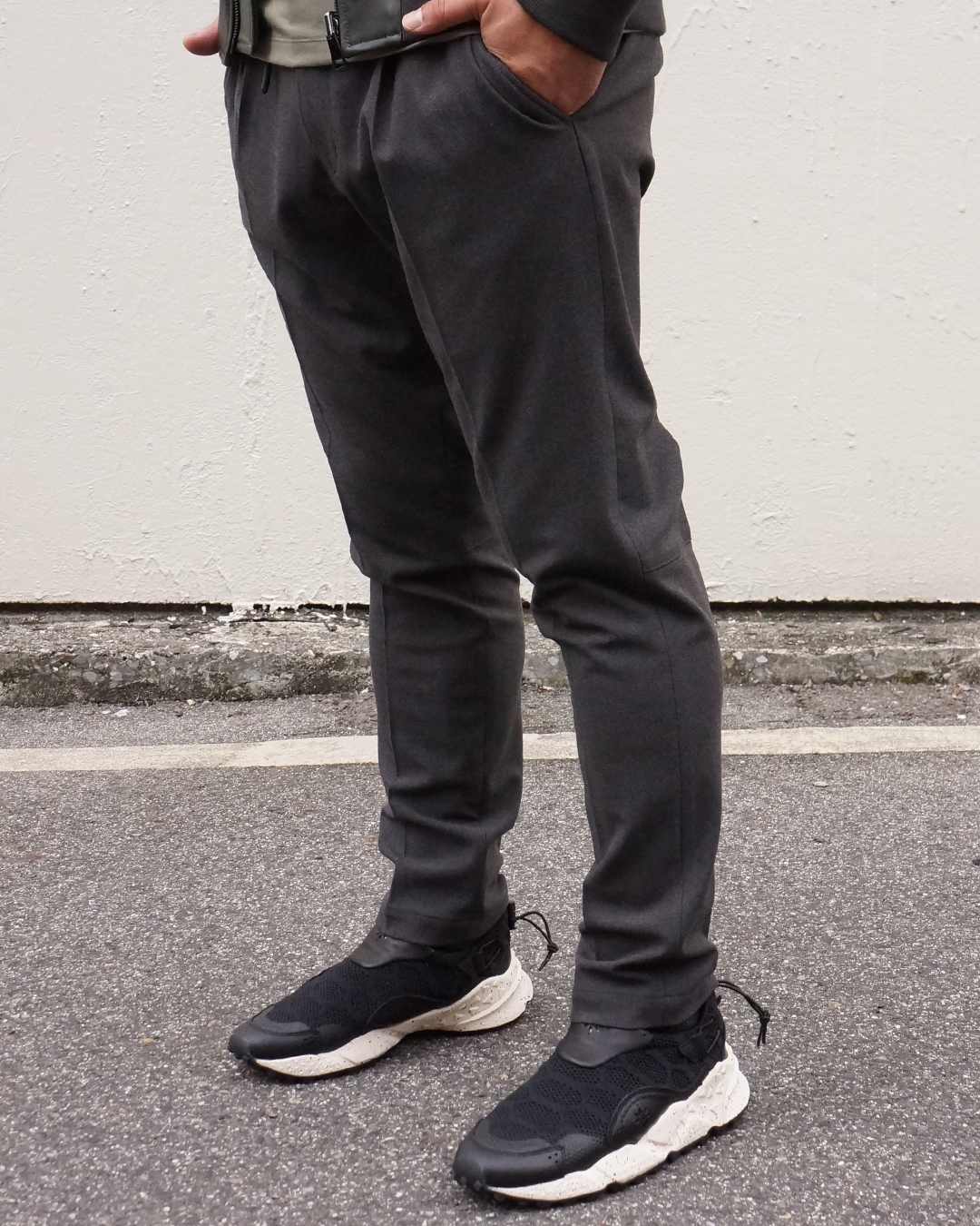 タックによる腿周りのゆとりと、膝下のビシッとしたメリハリの利いたシルエット。