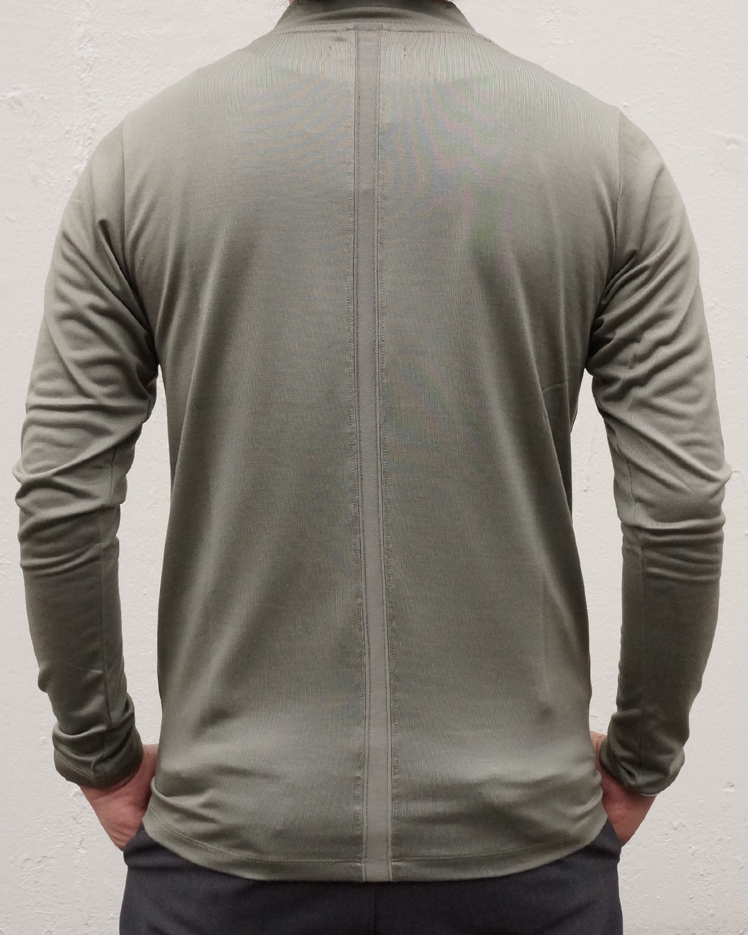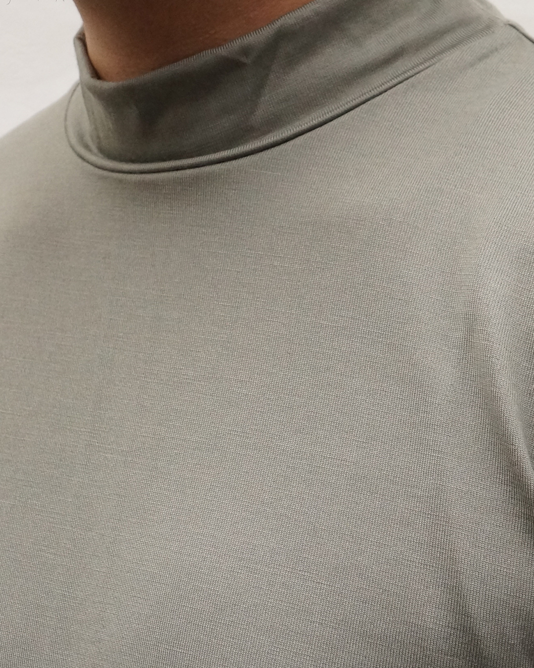 mockとは、「見せかけの・まがいものの」という意味で、タートルネックのように見えるけれども タートルネックではない襟元のデザインを、一般的に「モックネック」と言います。