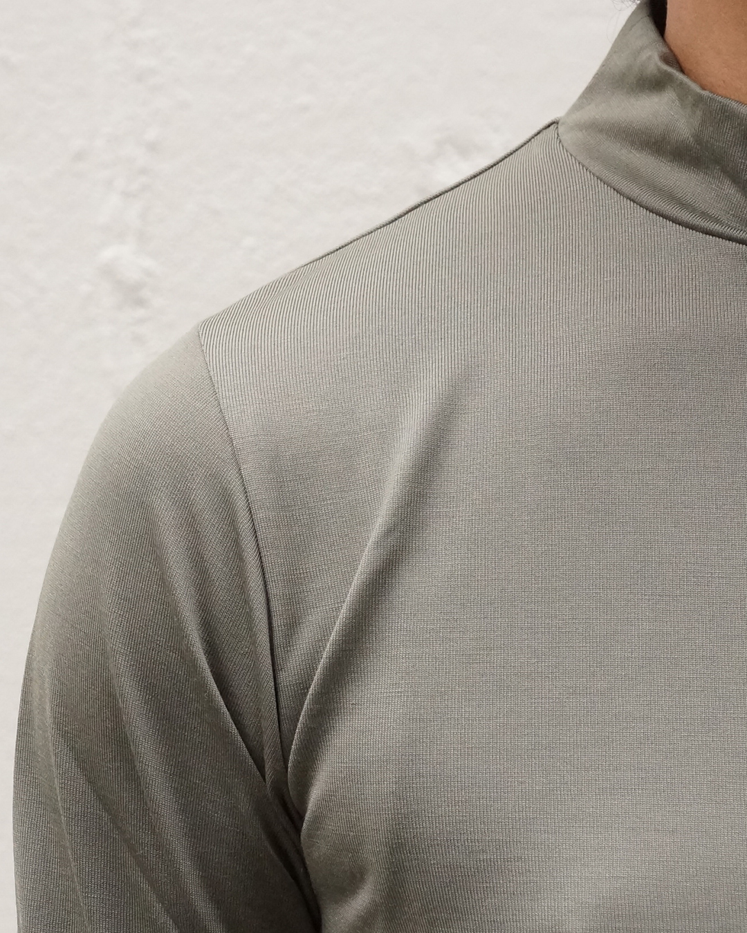 クルーネック以上、タートル未満の襟を折り返さないデザインです。
