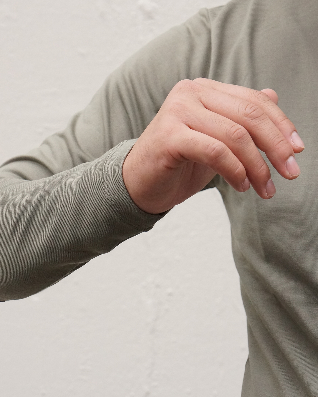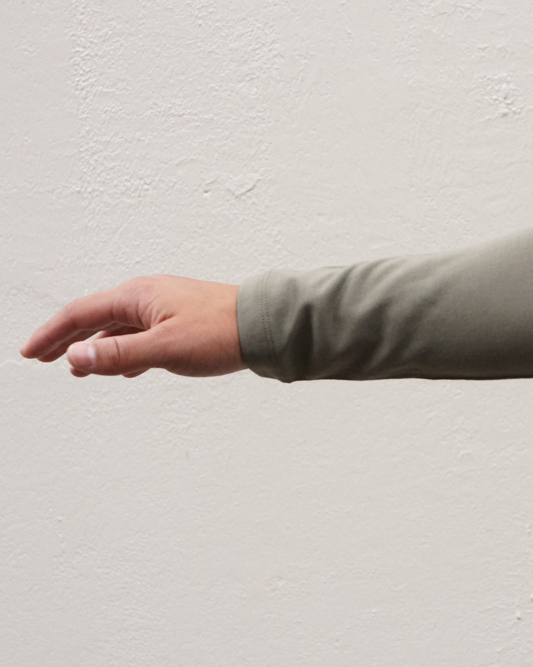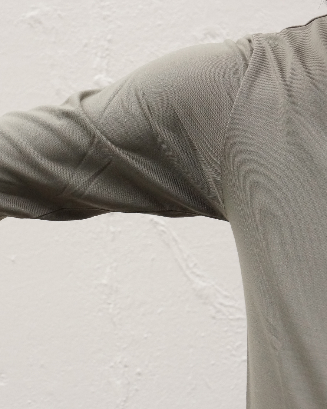 中には、junhashimotoの新作・WASHABLE WOOL MOCK NECK L/Sの淡いカーキを組み合わせて