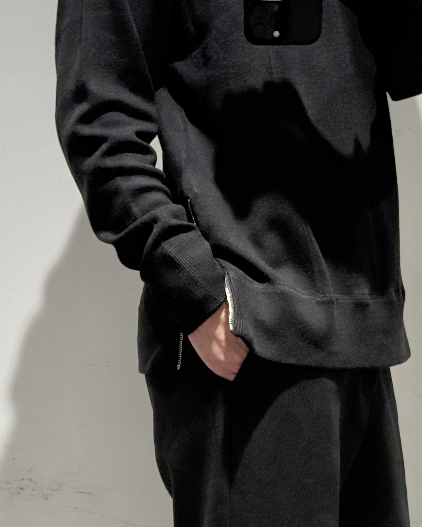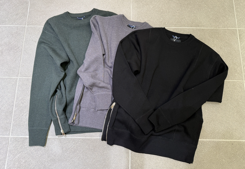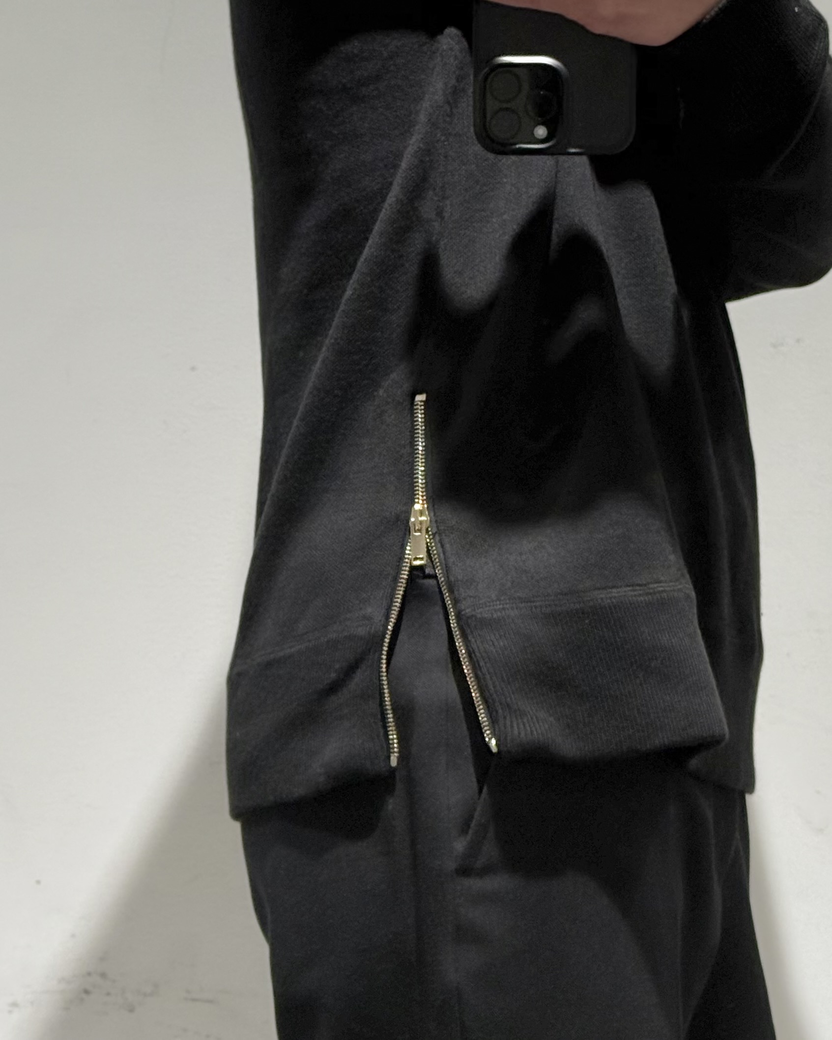両脇にRACCAGNI ZIPを搭載したクルーネックニット。