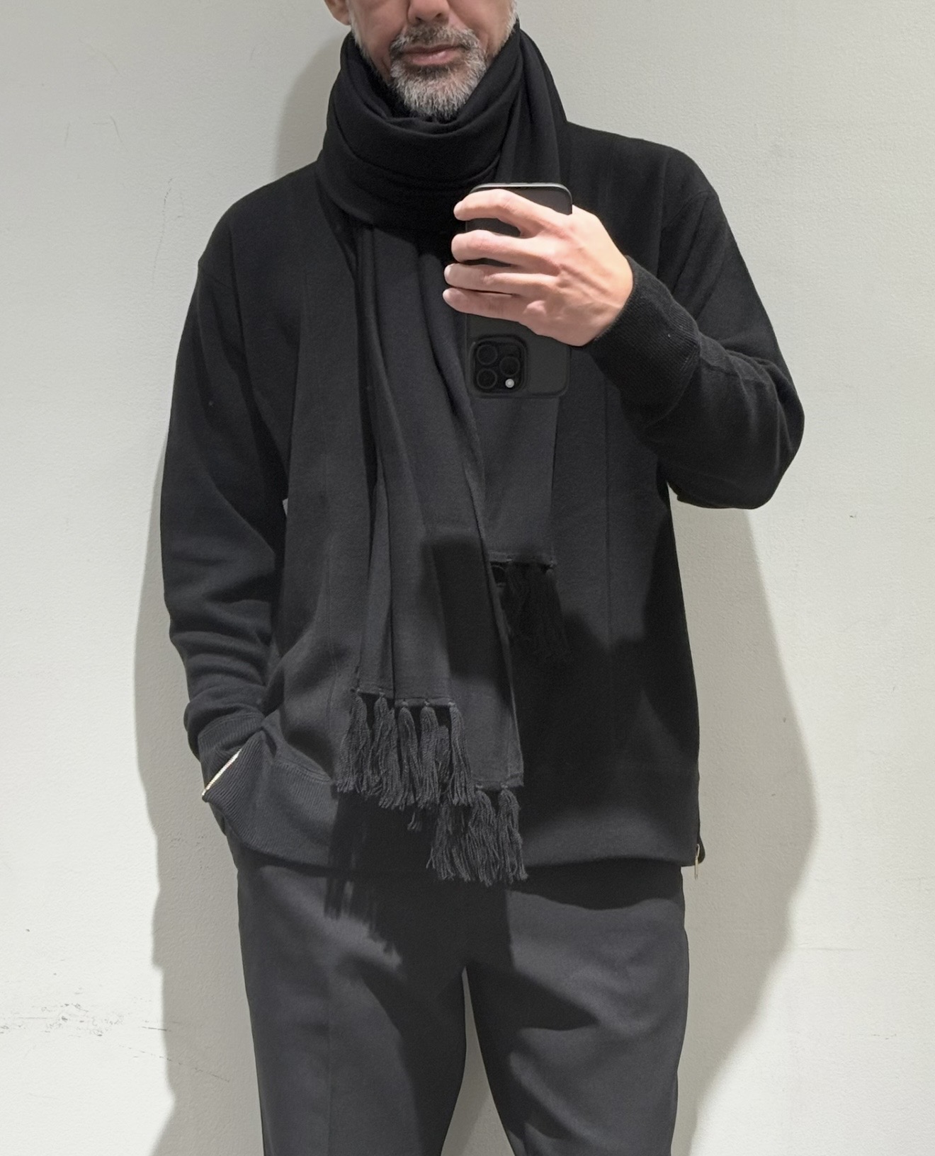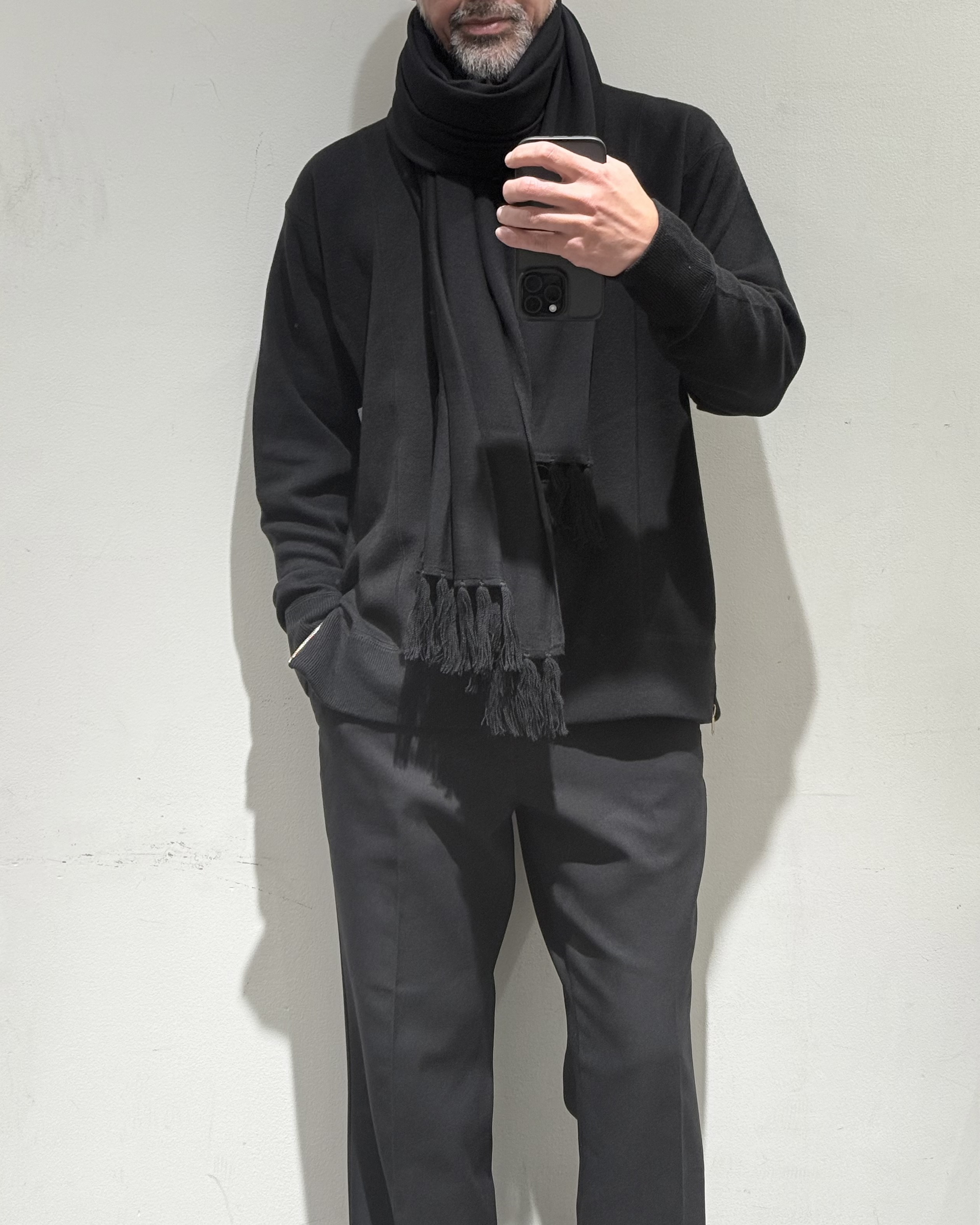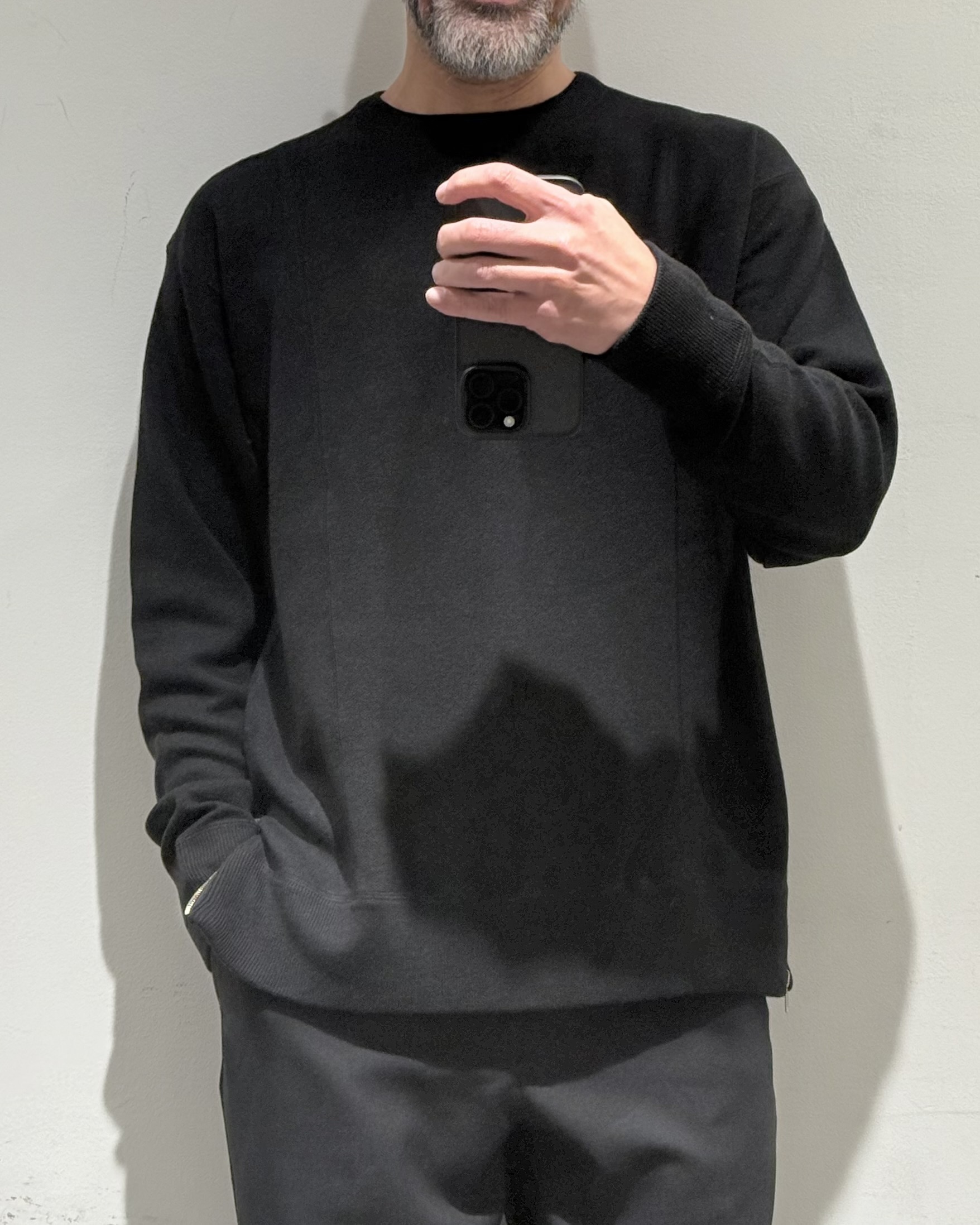 両脇にRACCAGNI ZIPを搭載したクルーネックニット。