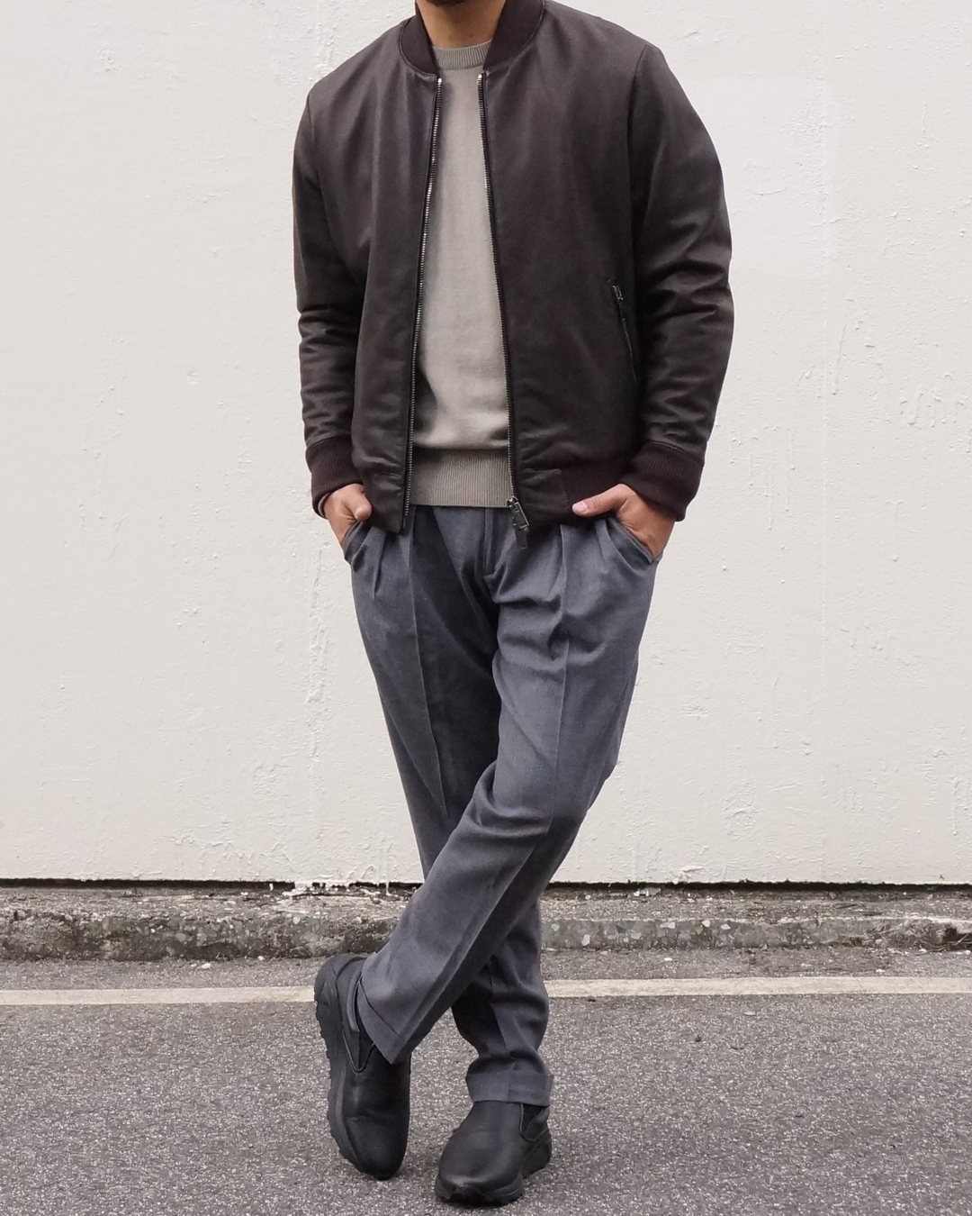 MA-1を脱いでも、技有りのクルーネックが登場するという