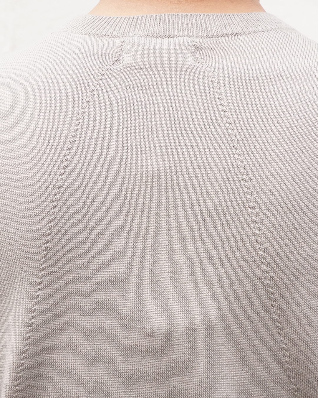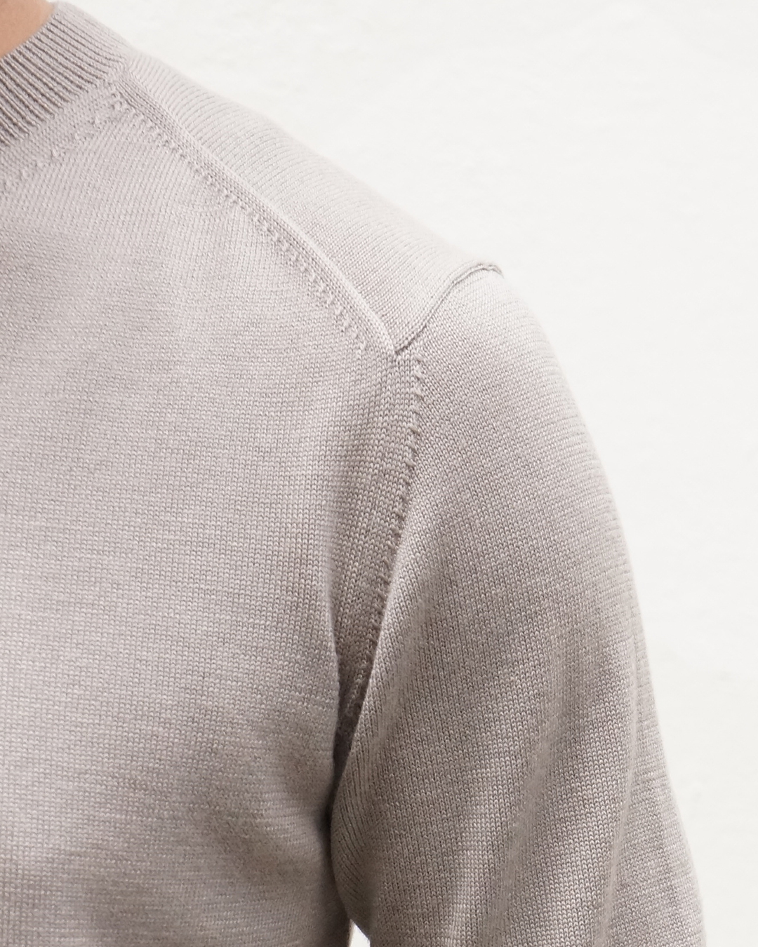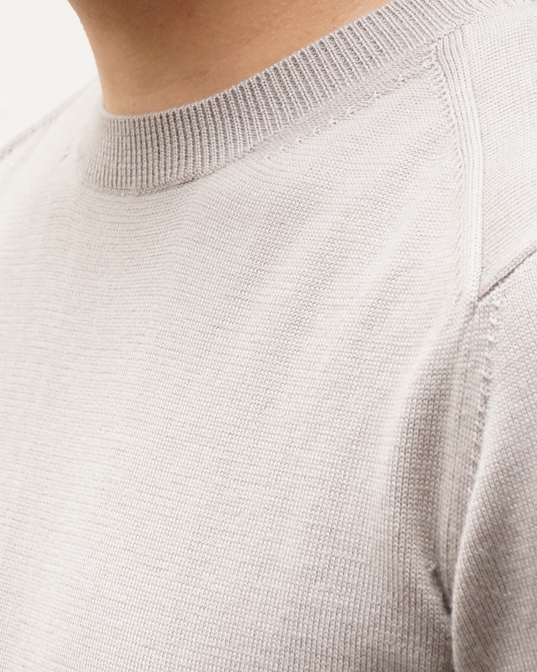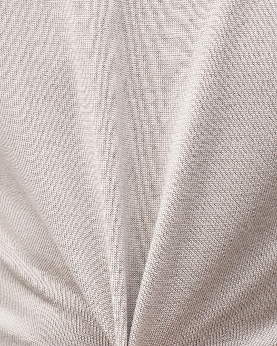 目の詰まった12ゲージの編み目で構成しつつ、エクストラファインメリノウールの特性である