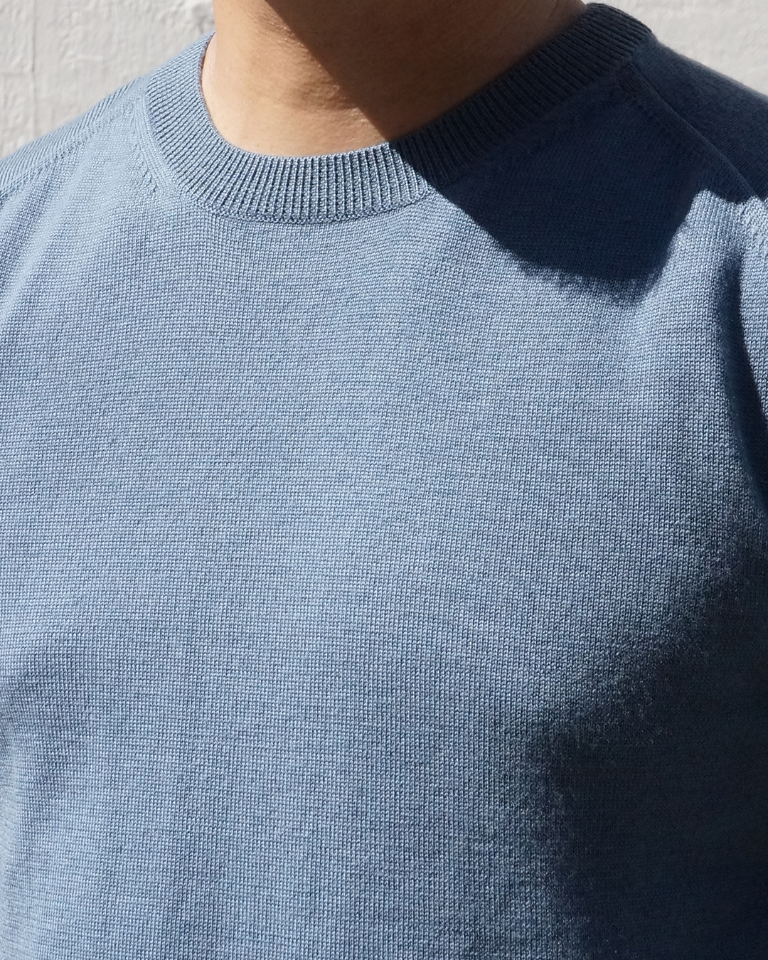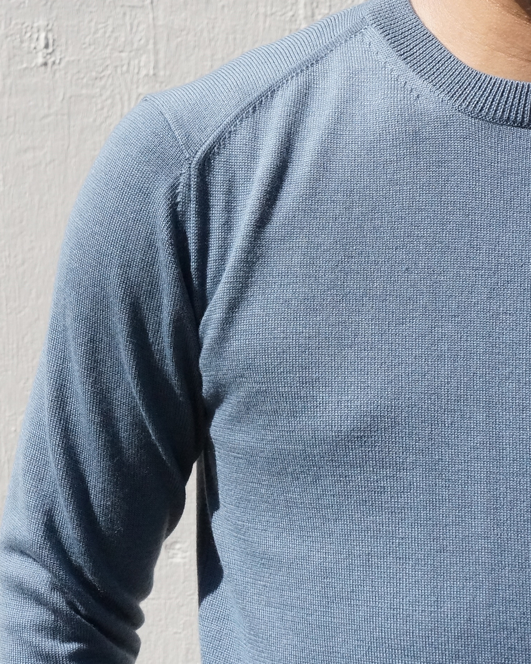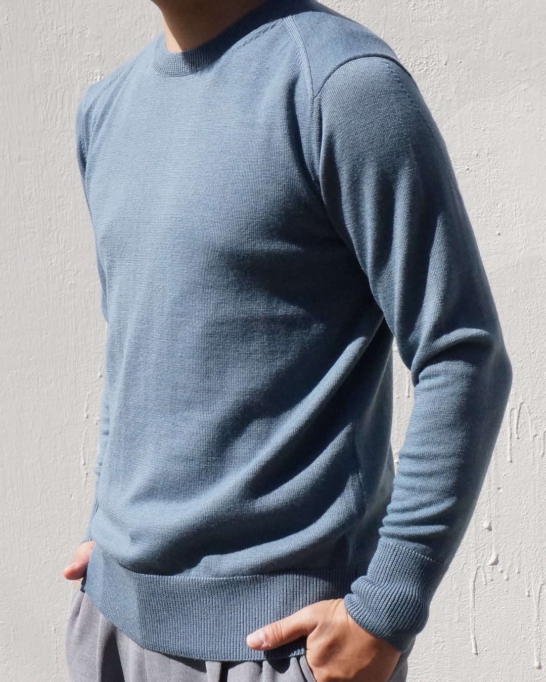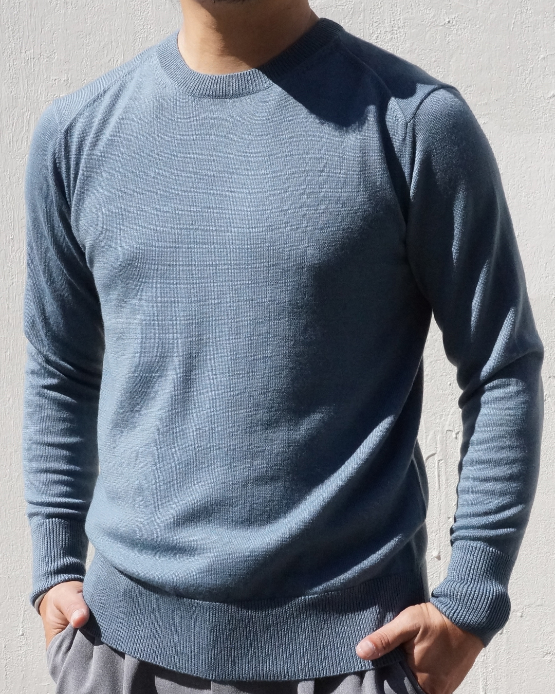本日は、爽やかなカラーが印象的な12G CREW NECK KNITをご紹介したいと思います。