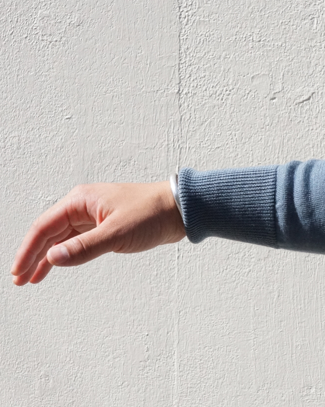 こちらは、シンプルさを特徴としながらも、柔らかく身体に馴染むシルエットと、綺麗な網目が際立つニットです。