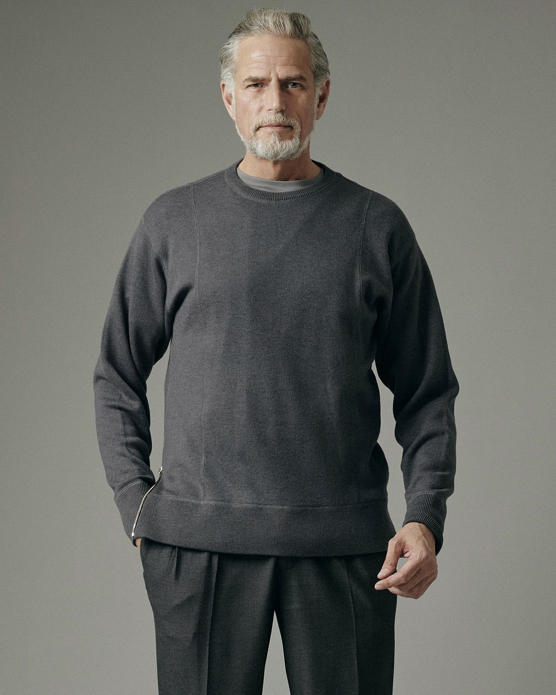 本日は、すぐに温かく着用できて、1枚でサマになる W ZIP CREW NECK KNITをご紹介したいと思います。