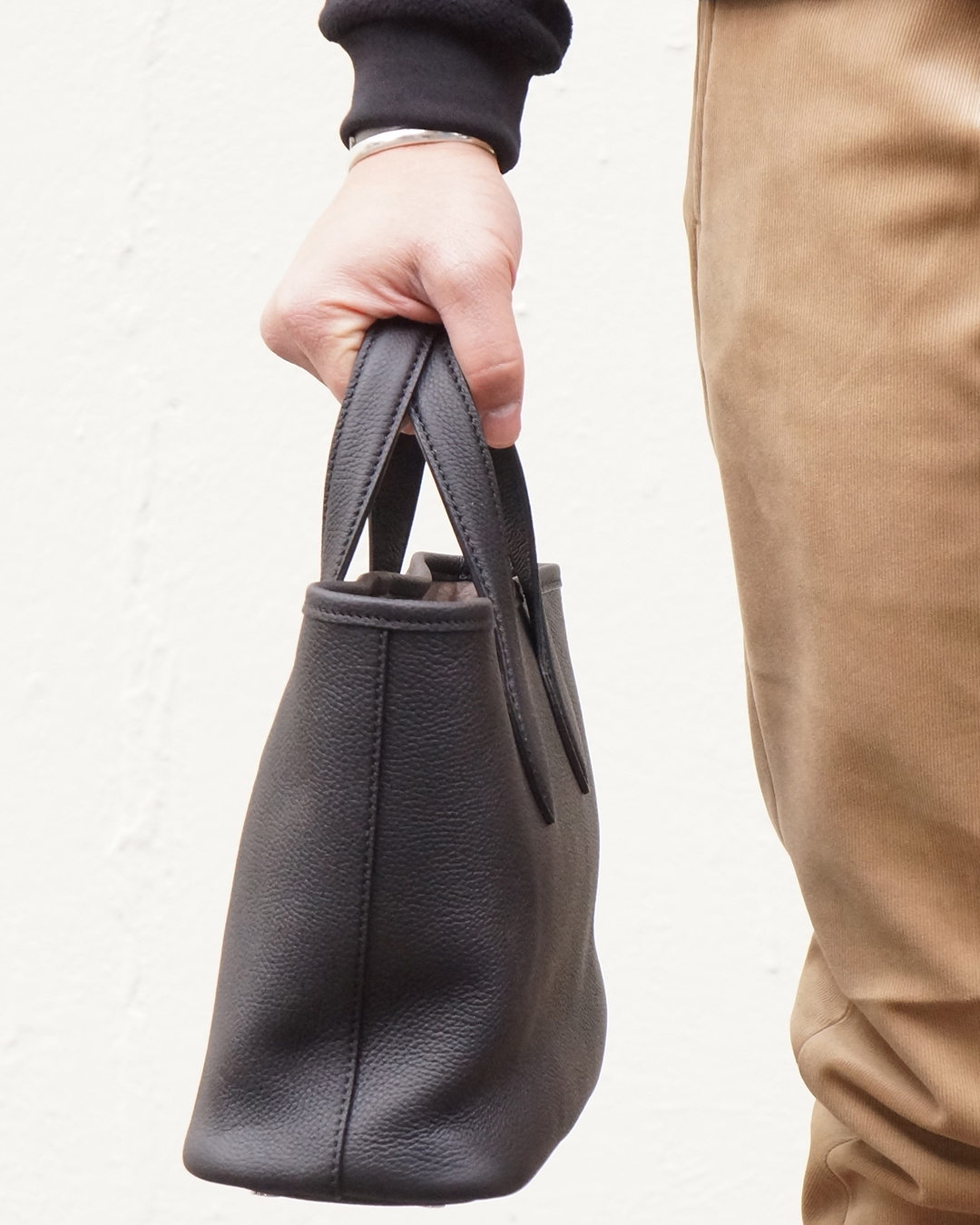 ハンドルも革芯を使用しているため、手にしたときのしっとり感と、バッグの大きさとのバランスも非常に計算された使い勝手の良いサイズで、使えば使うほど手に馴染んでいきます。 上品でシンプルなデザインは上質な大人のファッションにとてもマッチしてくれます。