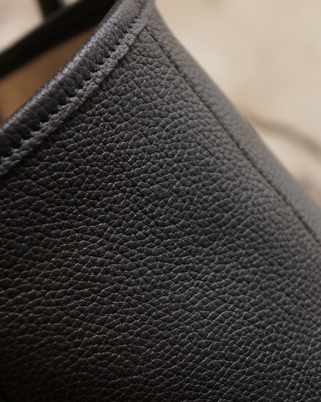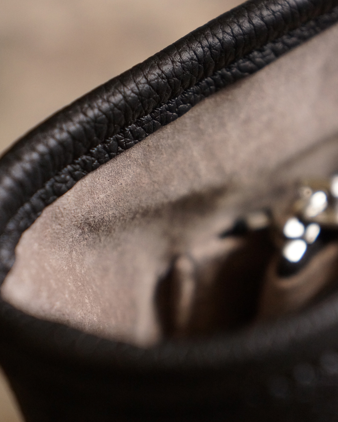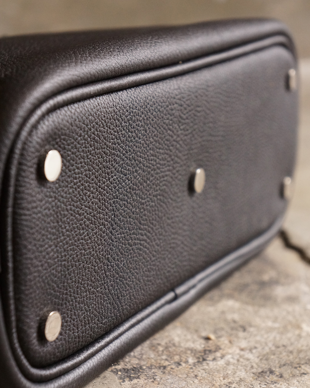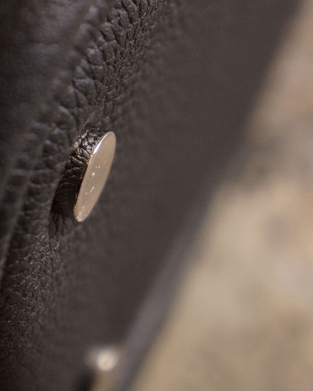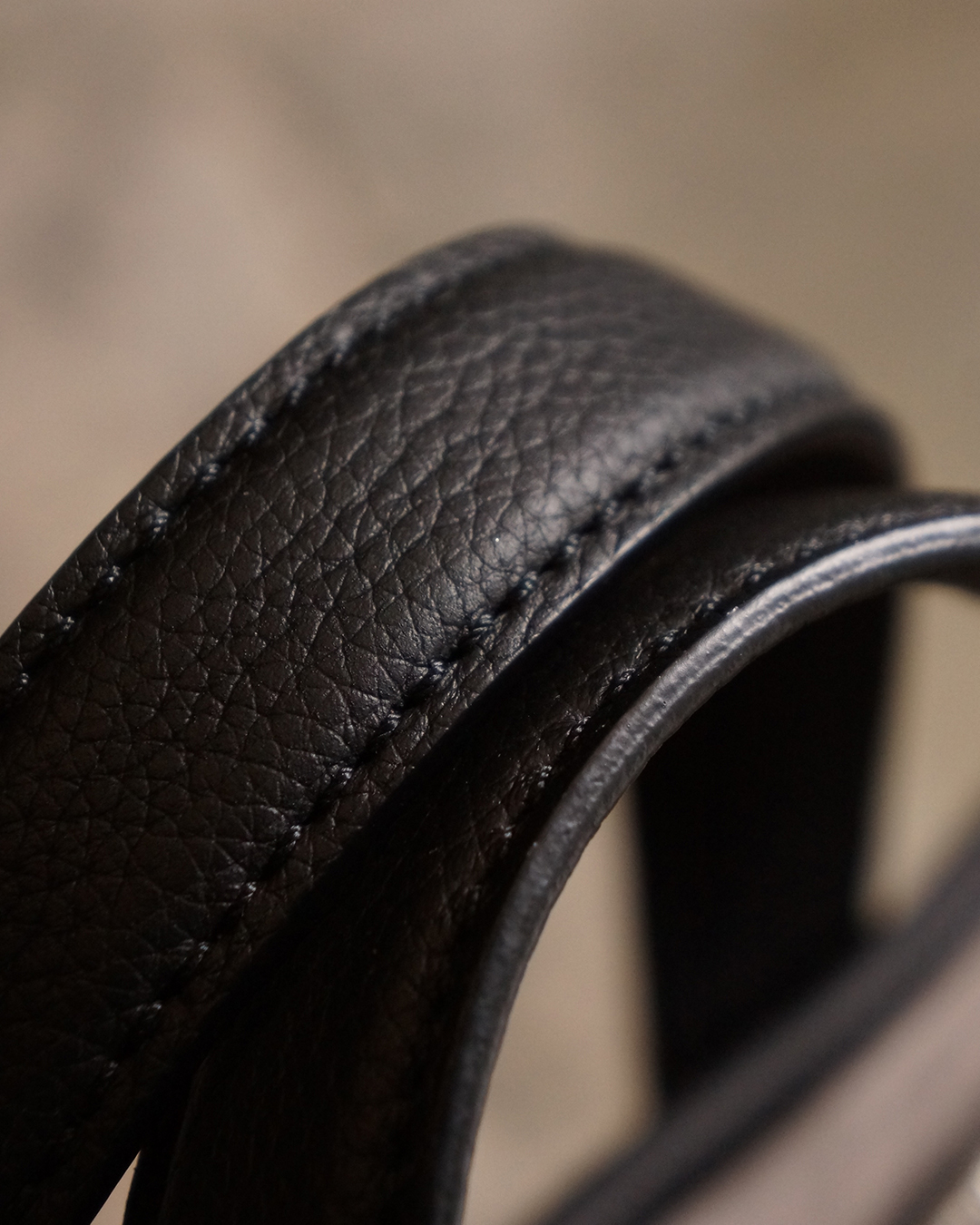 コンパクトで品のあるデザインとトリヨン・モーリスの張りのある柔らかなシボ感が上手く合わさっており、革の性質と縫製技術が非常に高次元で合わさった美しい仕上がりです。ハンドルは全て熟練の職人の手仕事によるコバ磨きで仕上げられています。