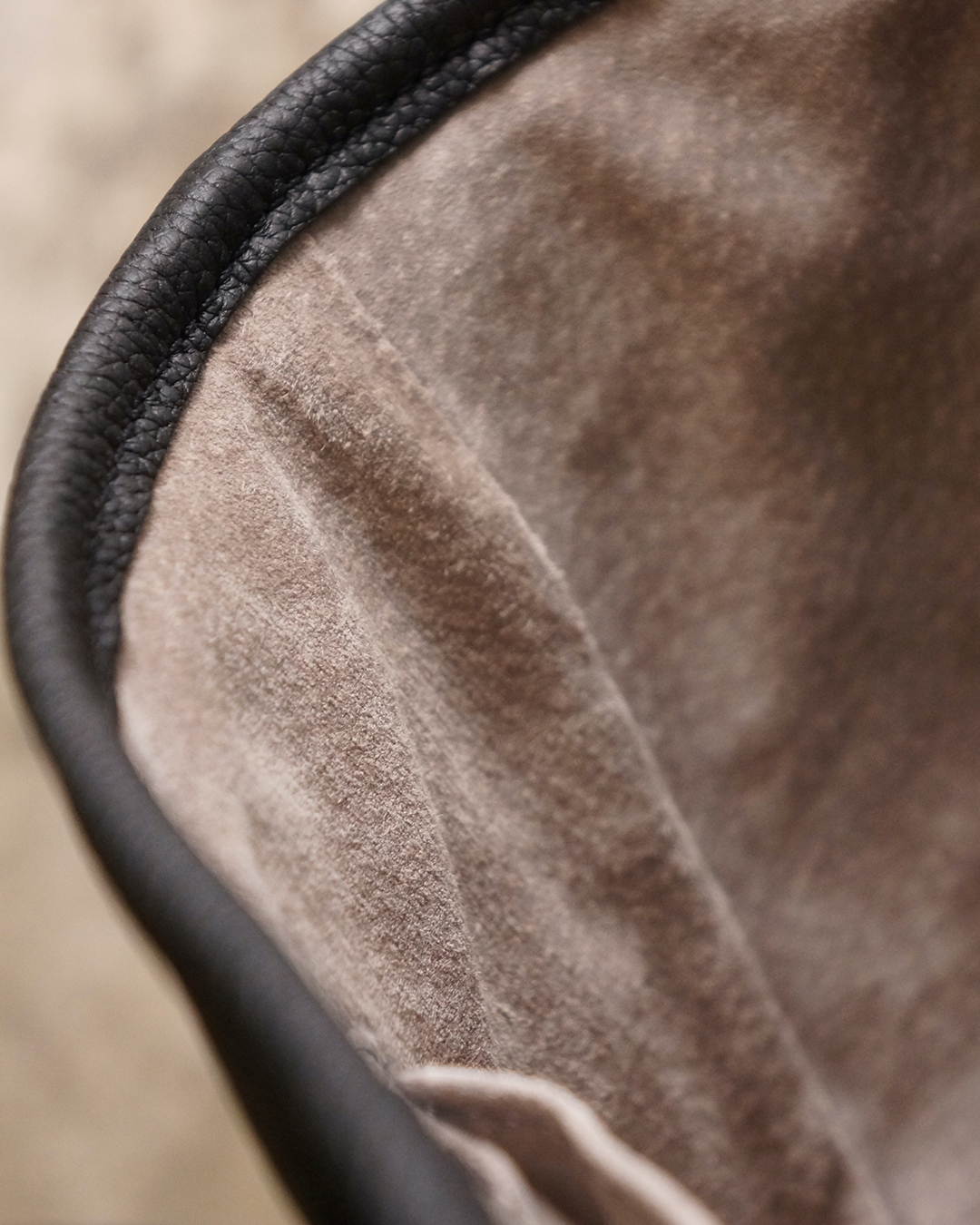 素材はフランスの最高級レザーであるトリヨンモーリスを使用。細かく美しいシボが際立つ表面と、しっかりとした厚みから生まれる非常に上質なタッチは革の魅力を存分に感じていただけます。