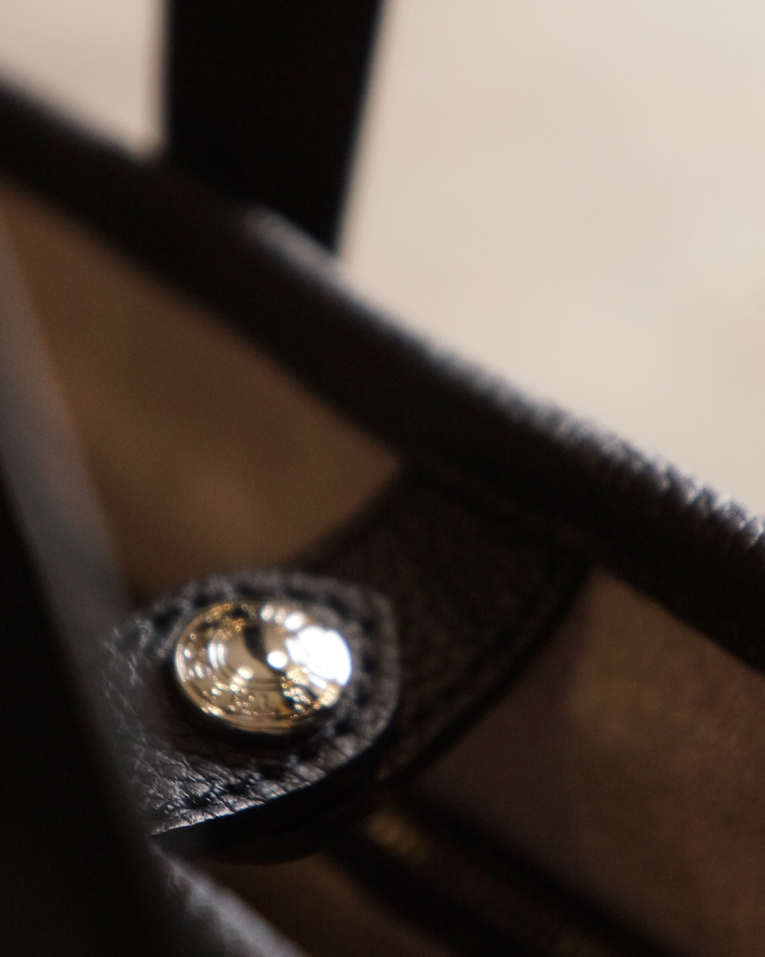 底鋲もミニトート用に高さが低く作られた真鍮無垢の鋲を使用しているため置いたときの安定感も抜群です。