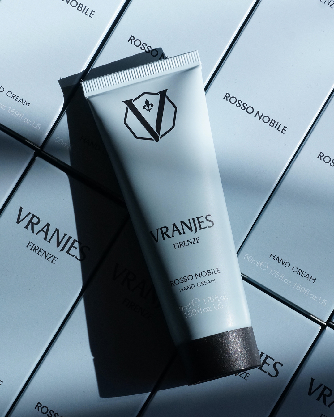 新しいロッソ ノービレのハンドクリームは、ヴェルベットのようにしなやかで素早くなじむテクスチャーで、うるおいと香りを兼ね備えています。