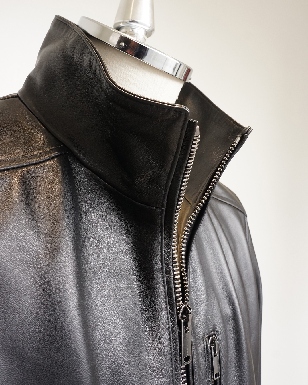 また、RACCARGNI社製のダブルZIPや、襟が少し高めに設定されており、品のある雰囲気に仕上がるのも特徴です。