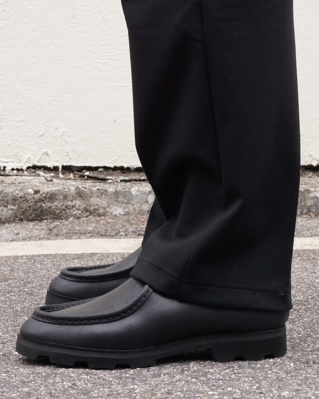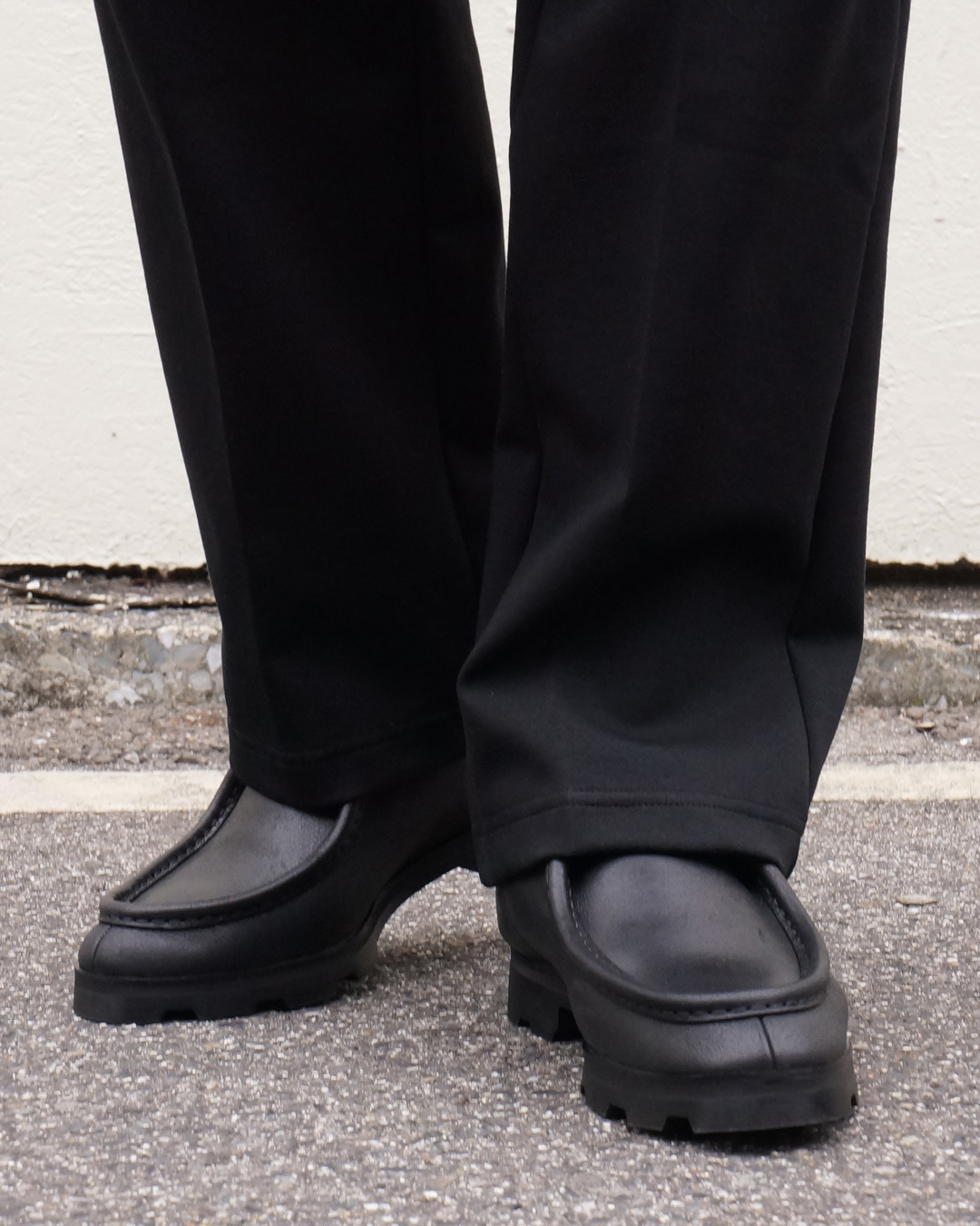 ワイドパンツと別注モカシンで合わせてみました。