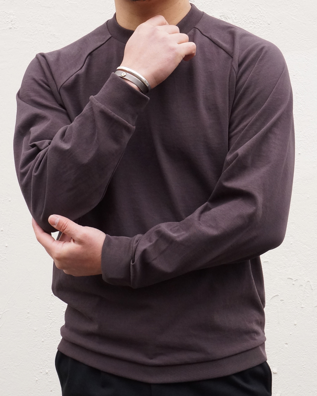 形としての特徴は袖口や裾のリブを排除し、1枚着としてはもちろん、先程に述べた通り、COATのインナーとしても使用できる点。
