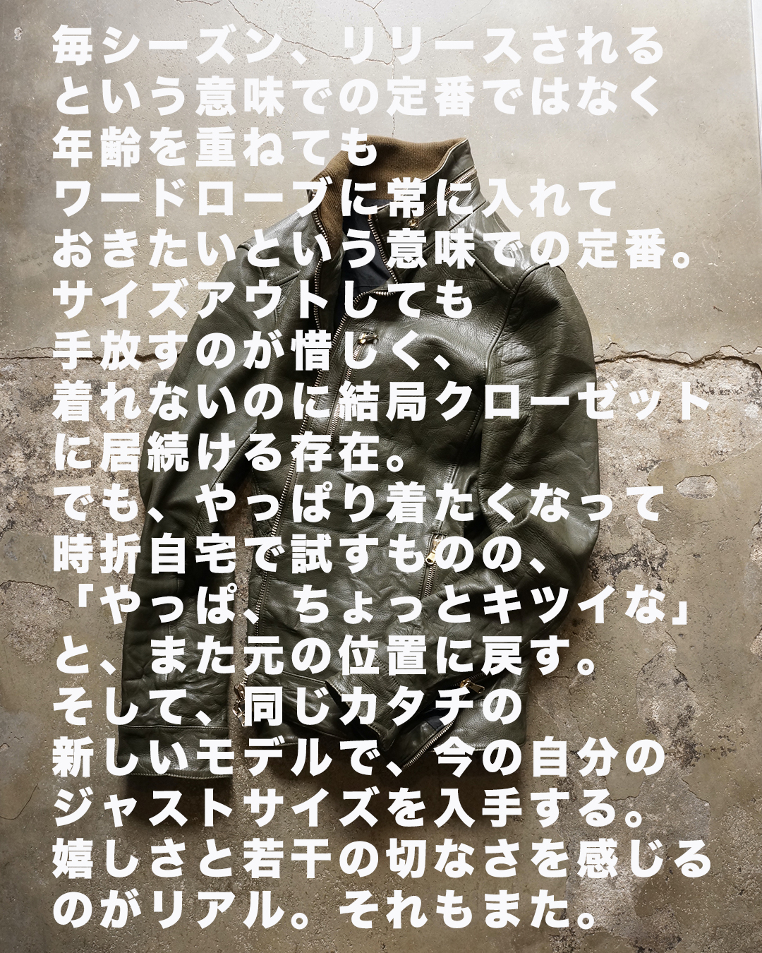 元は雑誌・LEONとのタイアップ企画【COATの中に着用出来るLEATHER】をコンセプトとして生まれたMODEL。