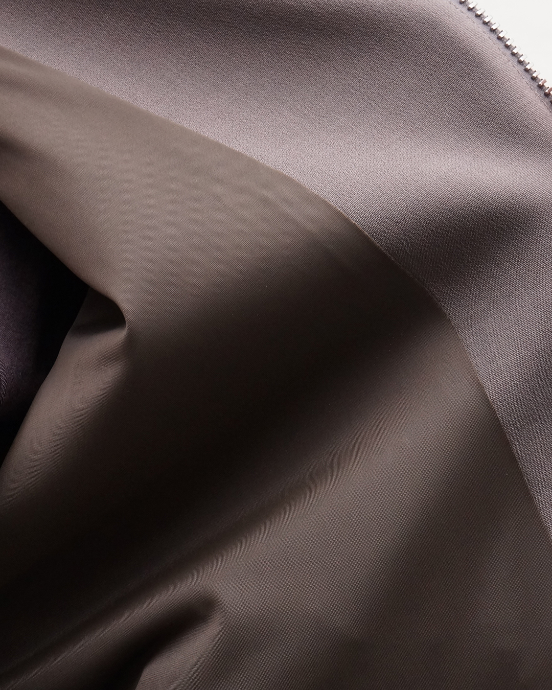 ポリエステルの強撚糸に特殊な減量加工を施し、膨らみがありながらも軽さを維持しているのも特徴です。