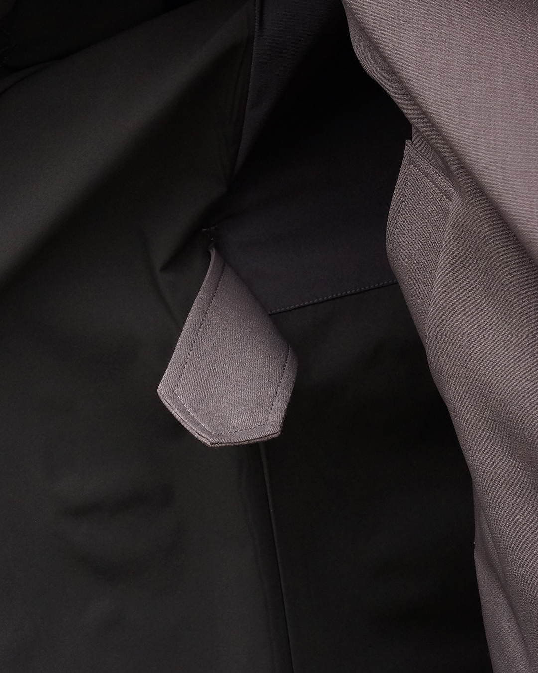 大きめに設定された襟を、立てられる(ニュアンスを付けられる)ように、台襟をつけていたり