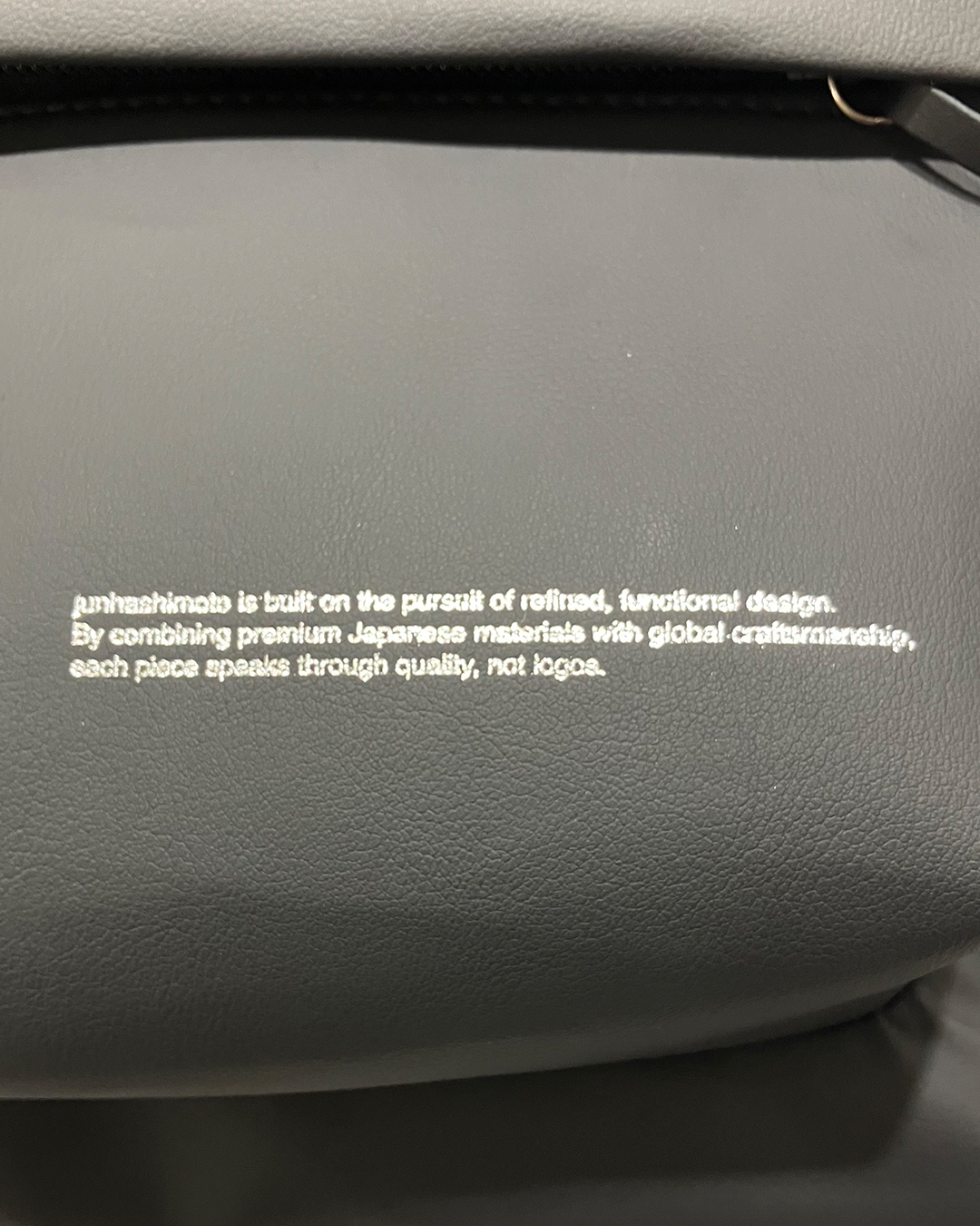 「junhashimotoは、機能的で洗練されたデザインの追求が確立されています。日本製の高級素材と世界の職人技を組み合わせることで、それぞれの物は、ロゴではなくて、品質で語りかけます。」