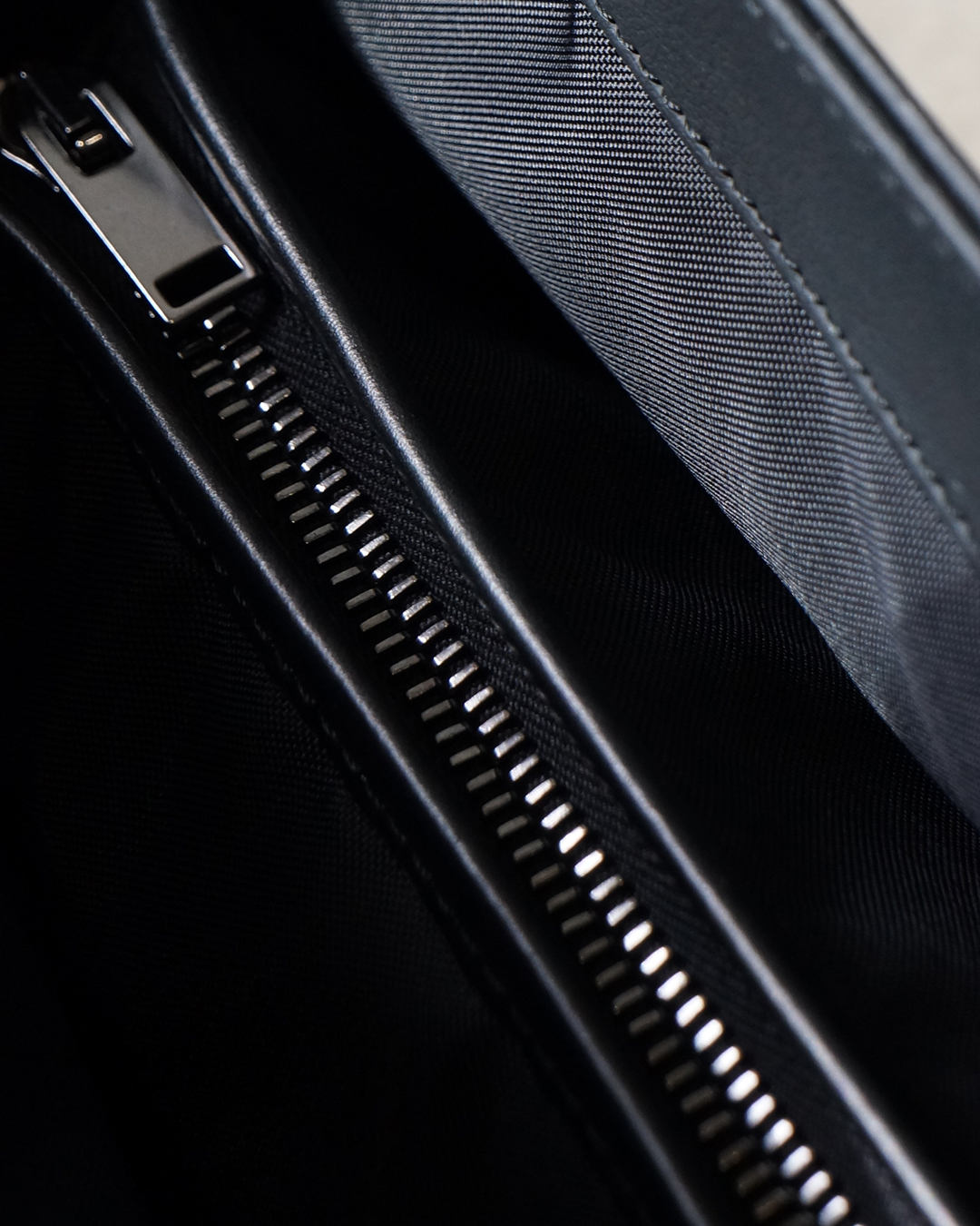メインのジッパーは、両サイドに大きく下まで下げることができるので、口が大きく開いて見通しが良く、物の出し入れがしやすいのが特徴です。