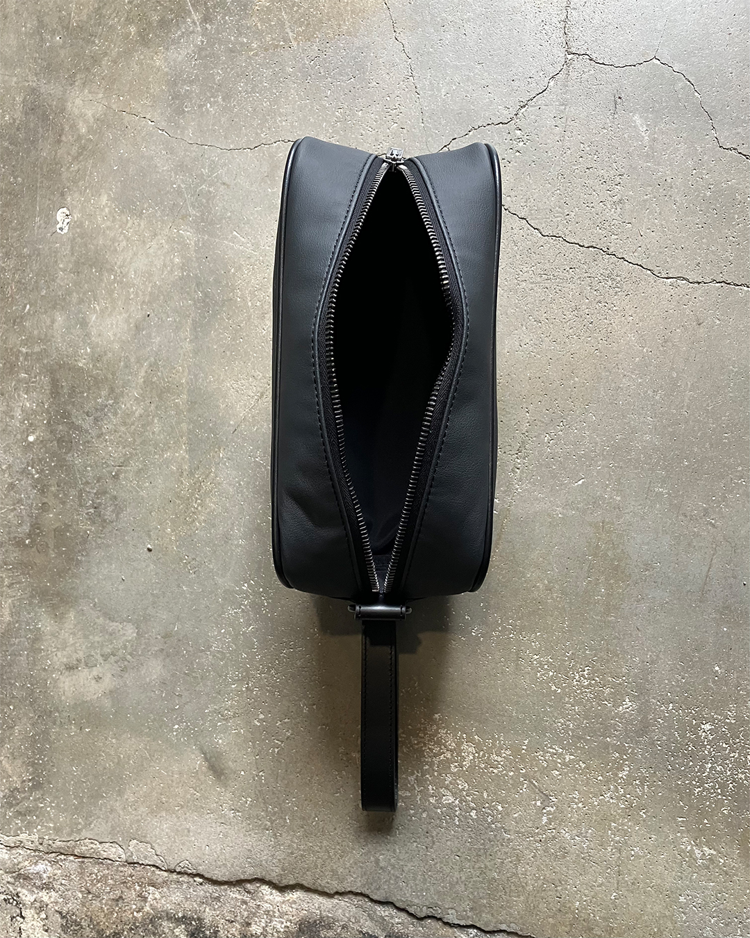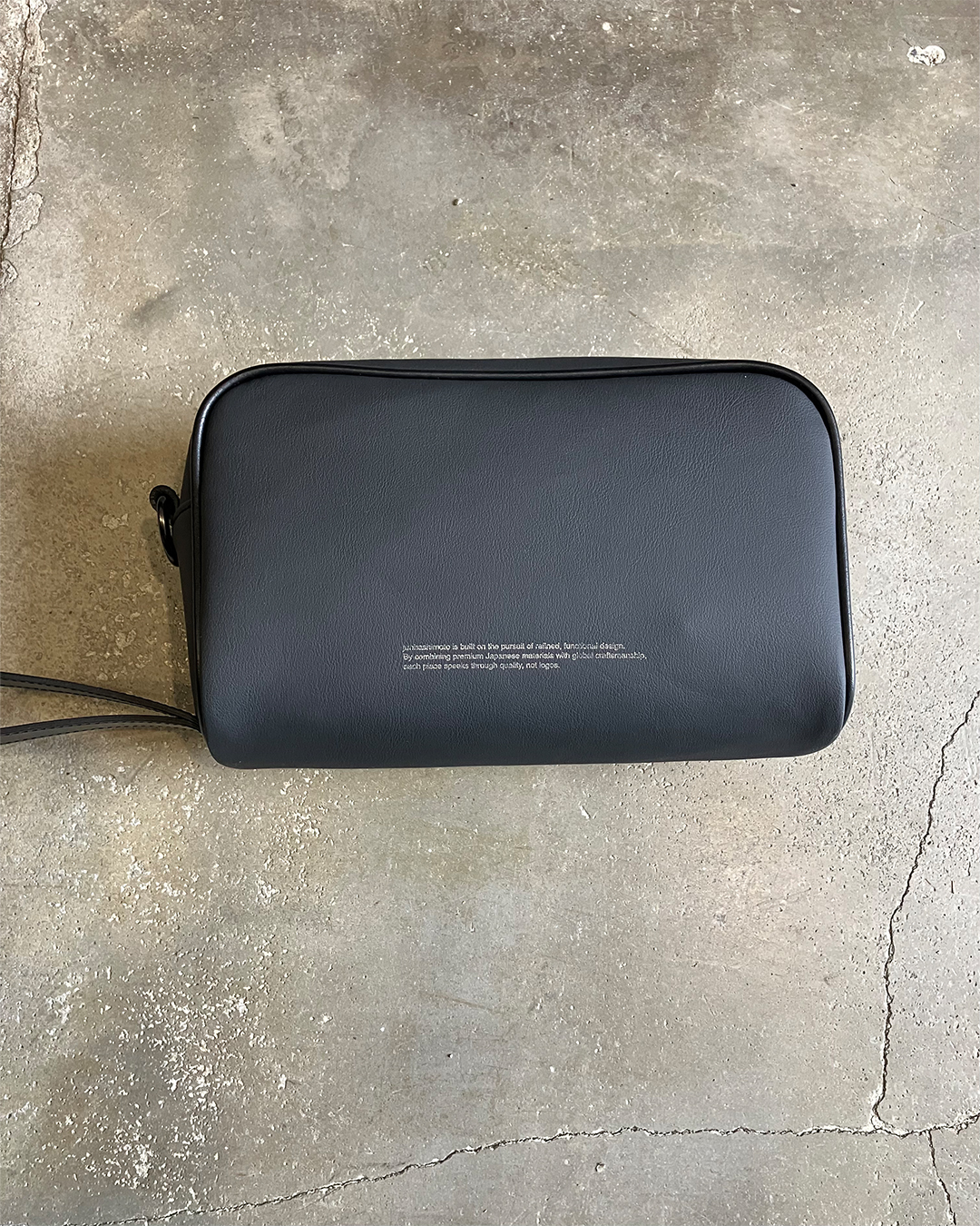 こちらは、本革の4倍の耐久性を持つという厳しい品質基準をクリアした新素材を採用したポーチです。