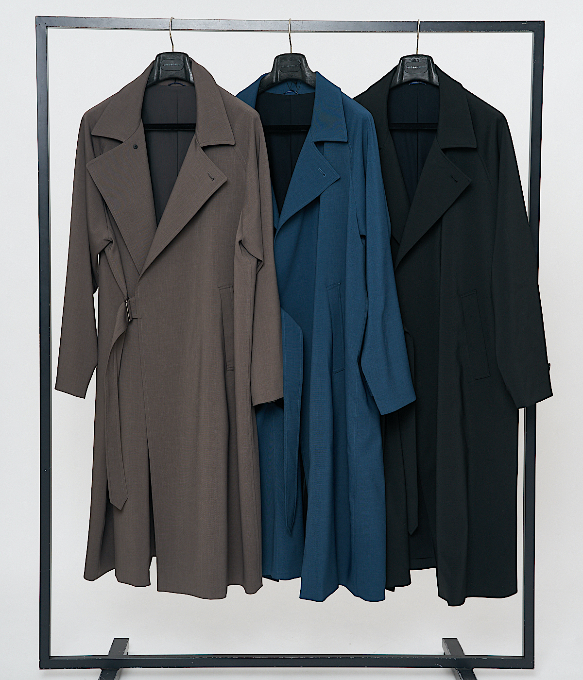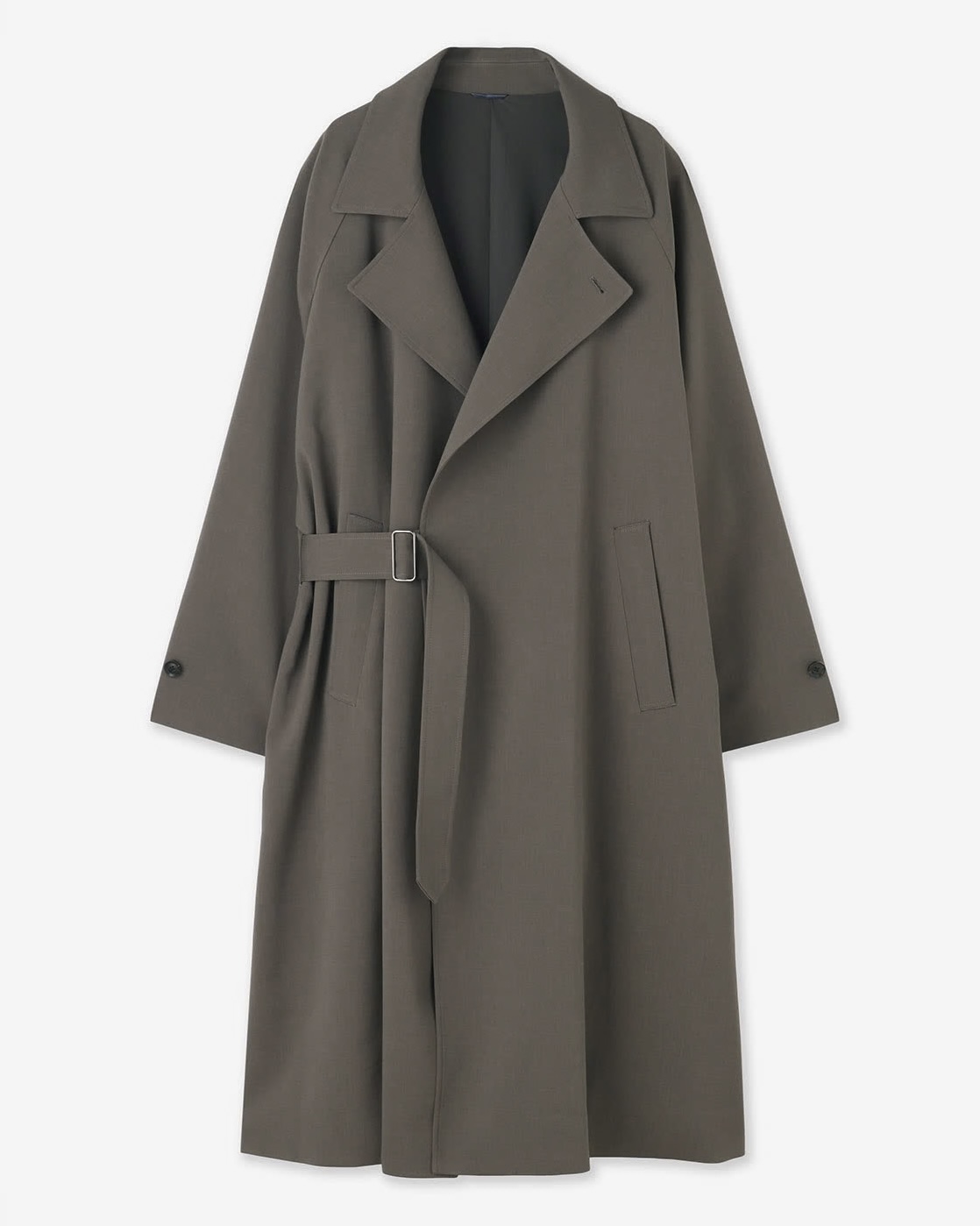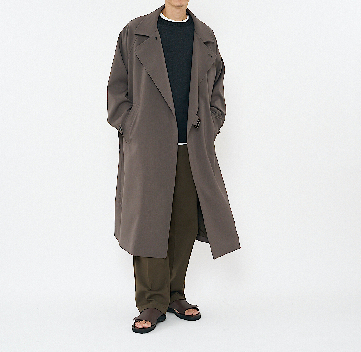 こちらは、上記のA-2と同じ素材、色を採用した柔らかいドレープ感とルーズシルエットが特徴のコートです。