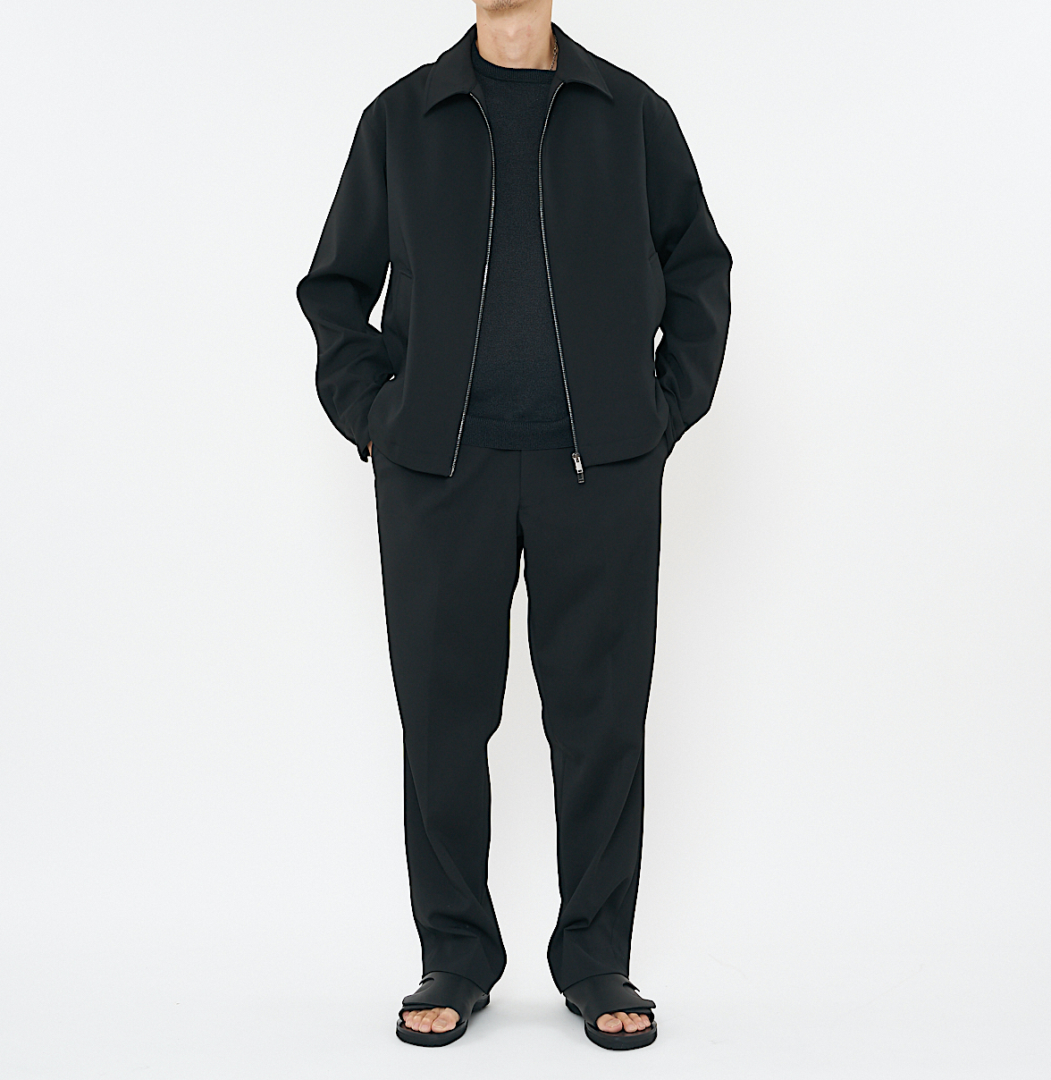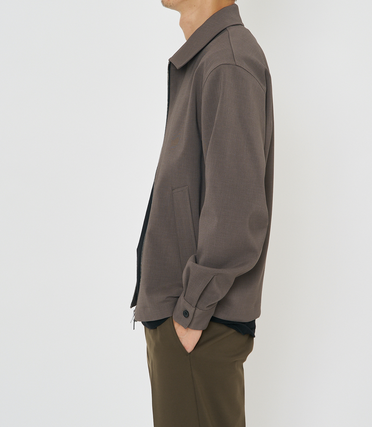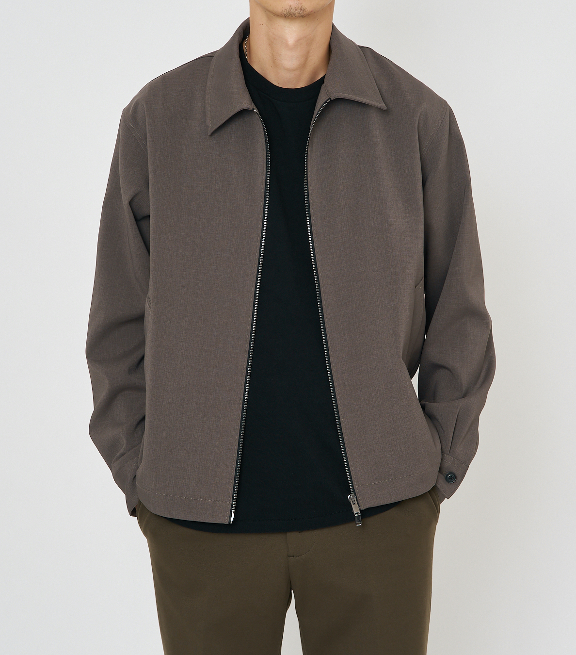 シルエットは少し緩めに調整してあり、前中心に光るラッカーニ社製の骨太ジッパーがインパクトを添えていますが、ブルゾン本体はとても軽くて、まるでシャツのような感覚で羽織ることができます。