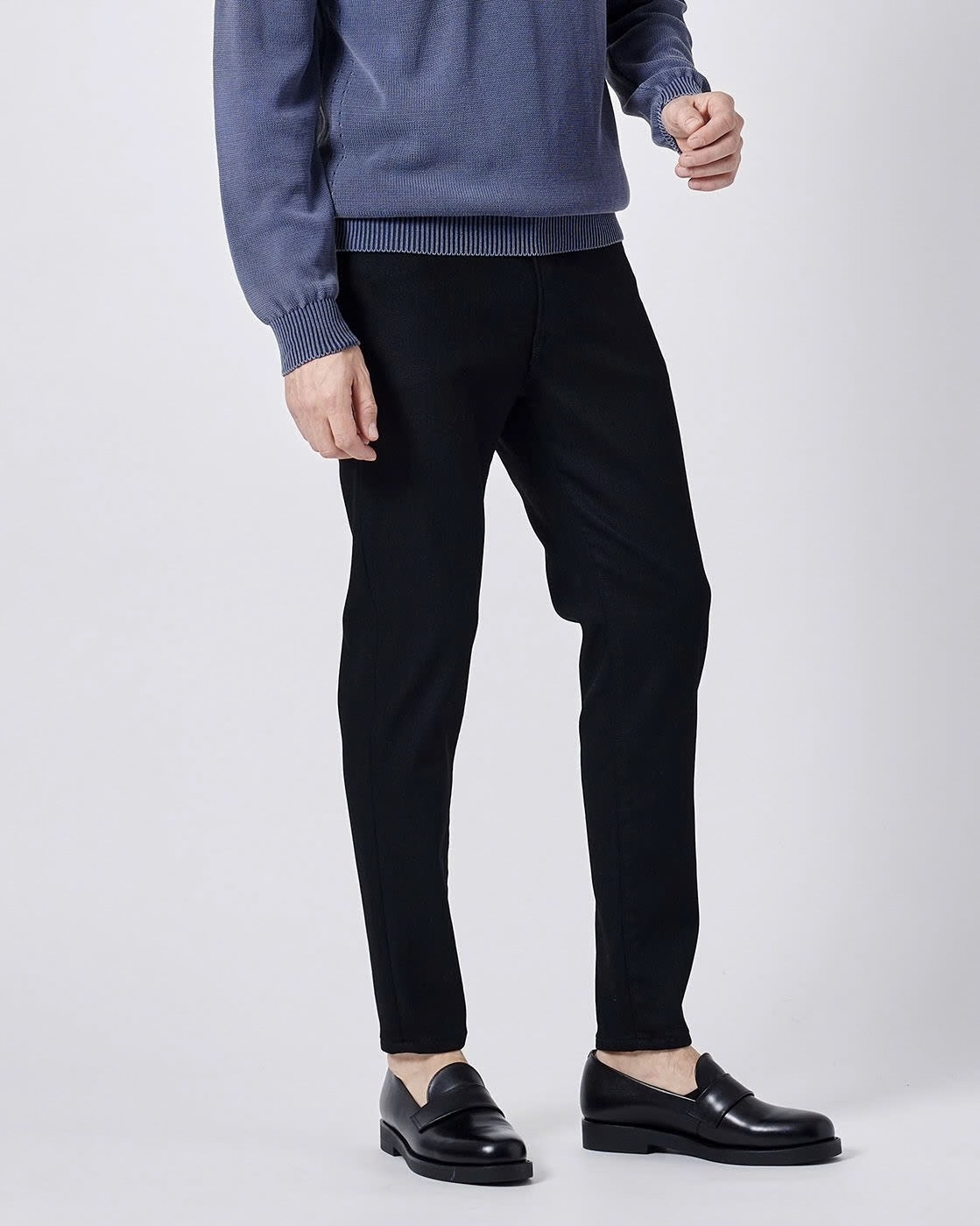 EDWINが開発した「JERSEYS」の素材を起点に、junhashimotoのこだわりを細部まで考慮しながらも、スリムテーパードという表現がよく似合う 洗練されたシルエットと快適な履き心地に仕上がっています。