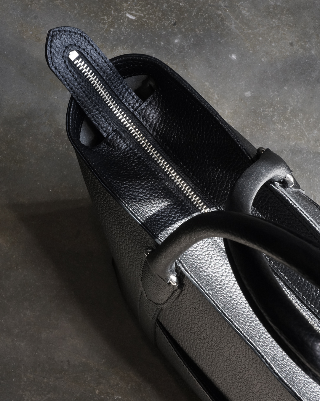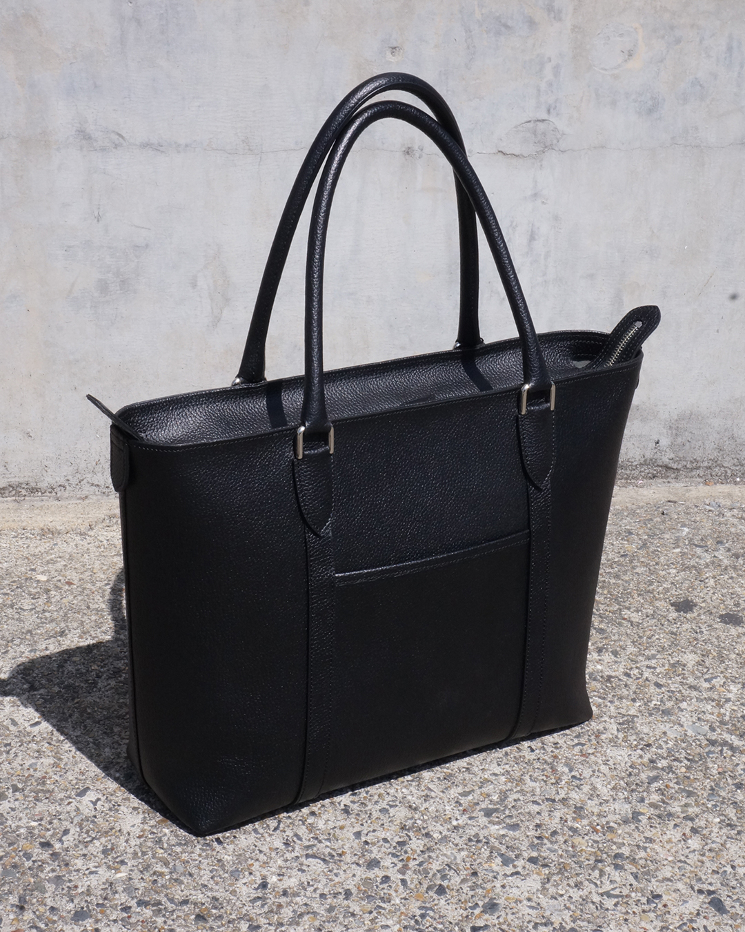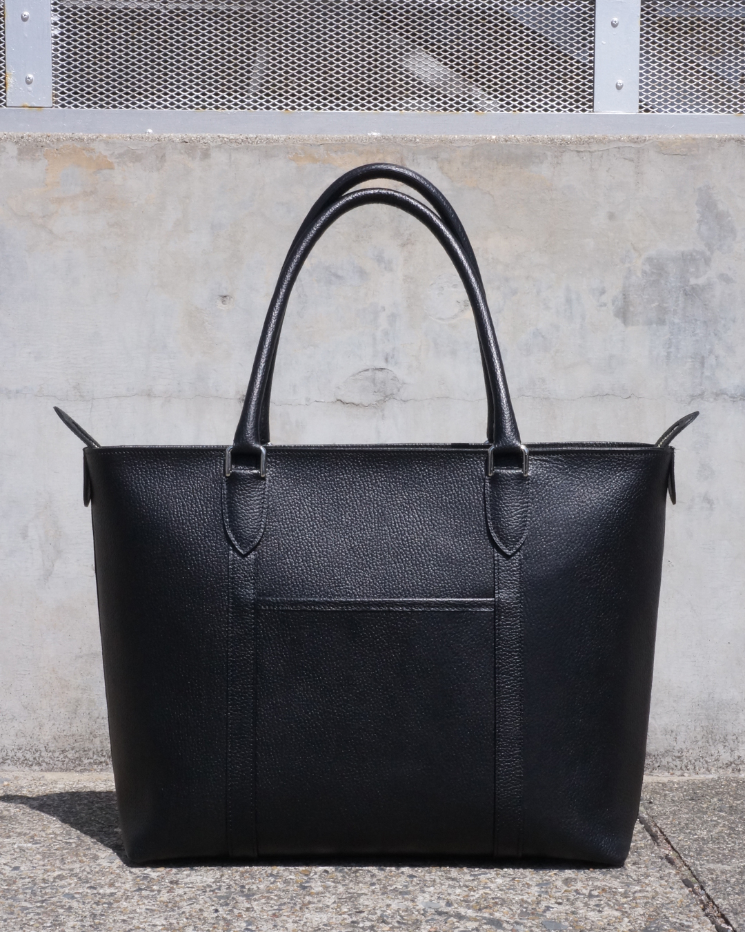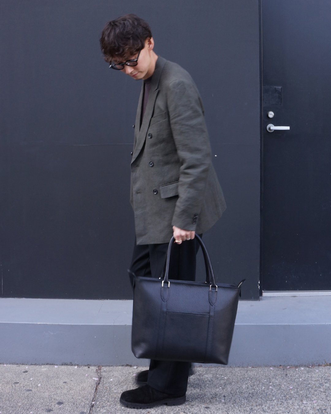 革の上品さと、日常使いしやすい機能性を兼ね備えたタフでシンプルなレザートートです。