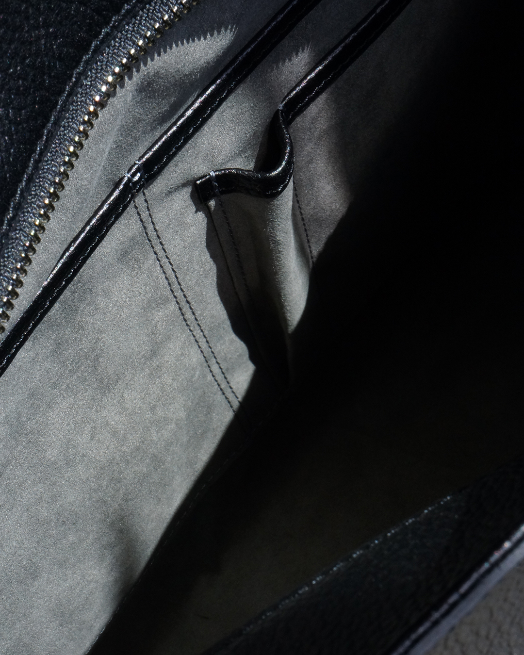 また、ファスナーの脇にはサイドガセットが付いているため、開けた際に荷物が横からこぼれにくい仕様になっています。